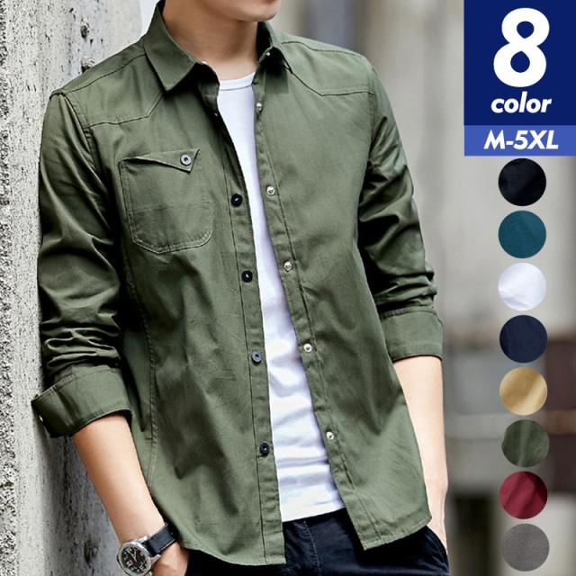 カジュアルシャツ メンズ シャツ 長袖 開襟シャツ ミリタリー シャツ ビジネス ボタンダウンシャツ ワイシャツ アウター 通勤 秋 秋物トップス ワークシャツ ミリタリーシャツ アメリカ おしゃれ お洒落 無地 大きいサイズ 通勤 通学 ゆったり 薄手 ストレッチ スキニー ストレッチ アウター ライトアウター ミリタリー 高品質加工 シャツ