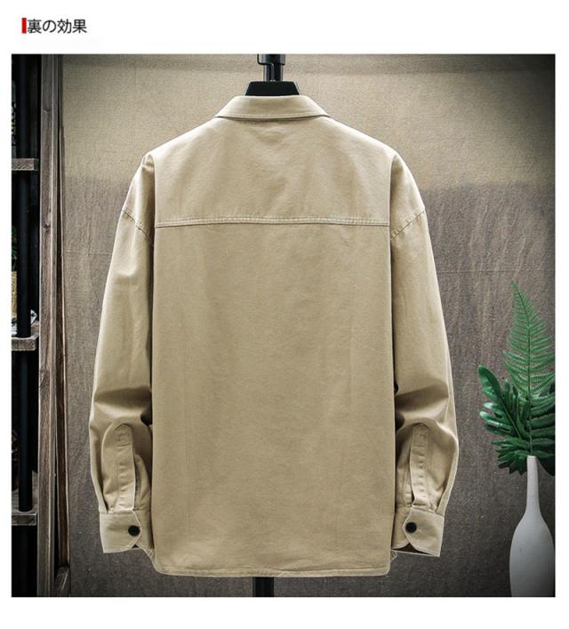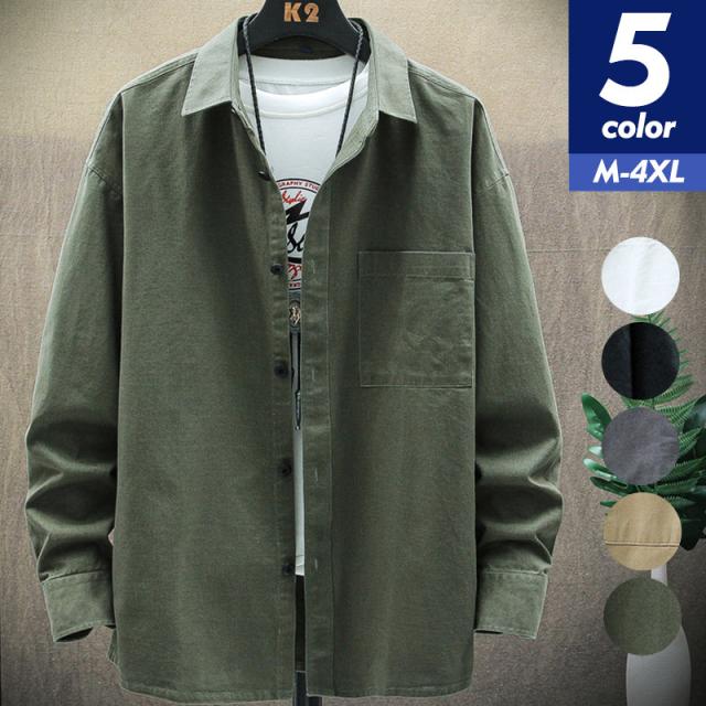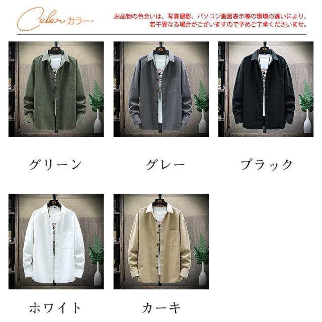 カジュアルシャツ メンズ ワーク シャツ 長袖シャツ 大きいサイズ 無地 春秋 通勤 開襟シャツ アウター 秋物 無地 紳士服 ア