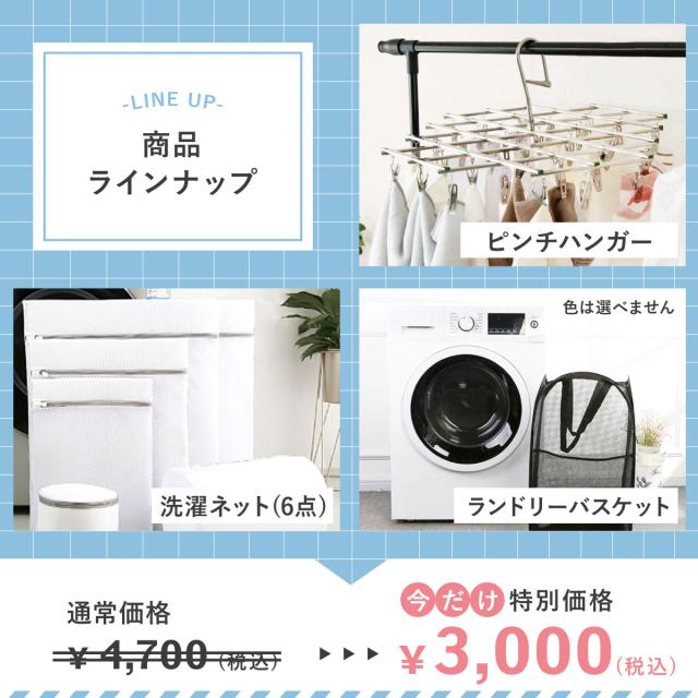 洗濯グッズ ピンチハンガー 洗濯ネット ランドリーバスケット 洗濯 福袋 新生活セット laundry-set