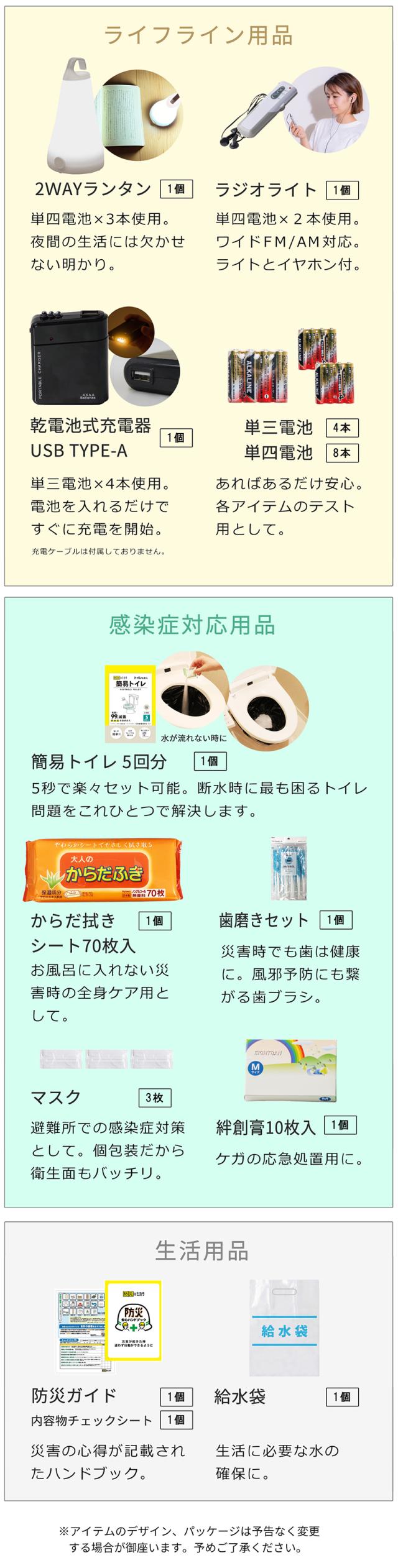 | 雨具×1 | 雨天の避難、防寒対策として |