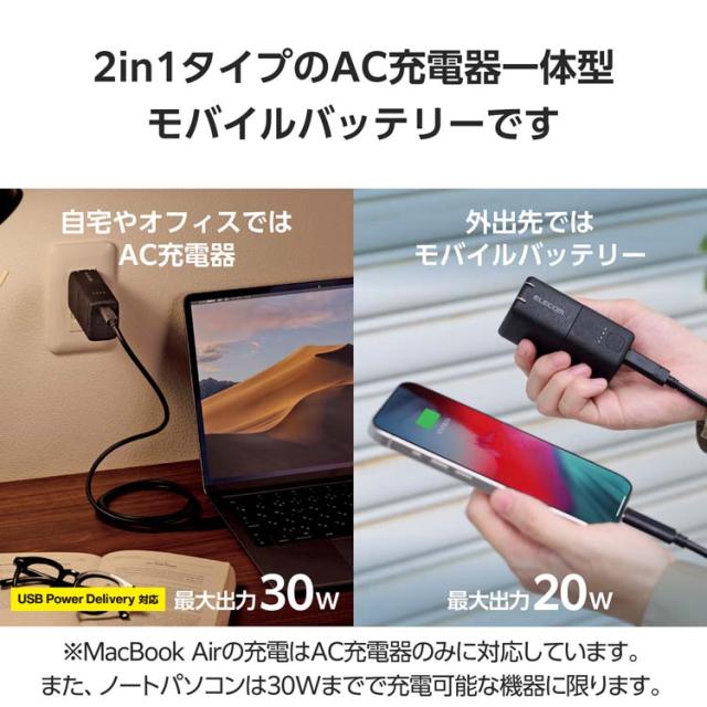 ●1台2役で使える、USBPowerDeliveryAC充電器一体型モバイルバッテリーです。