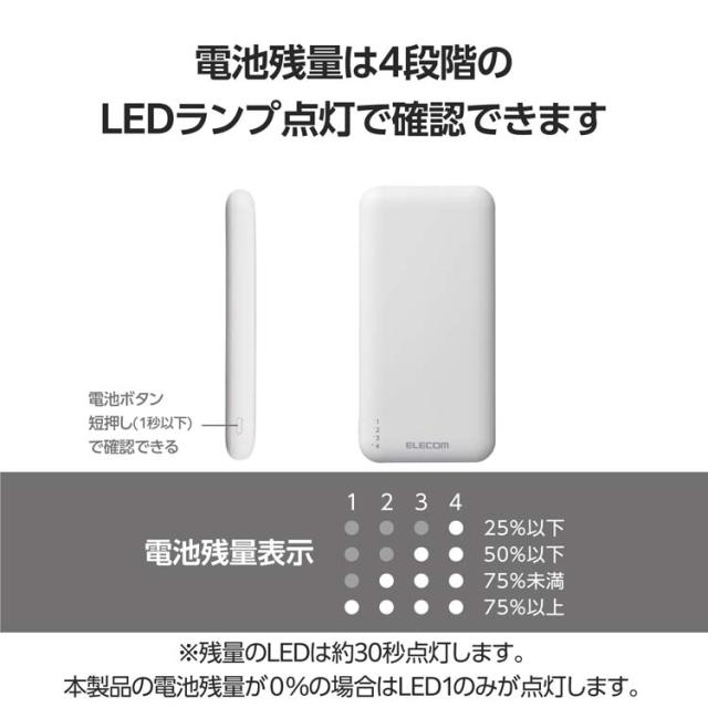 【エレコム モバイルバッテリー ホワイトの商品詳細】