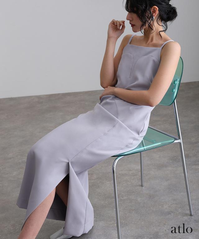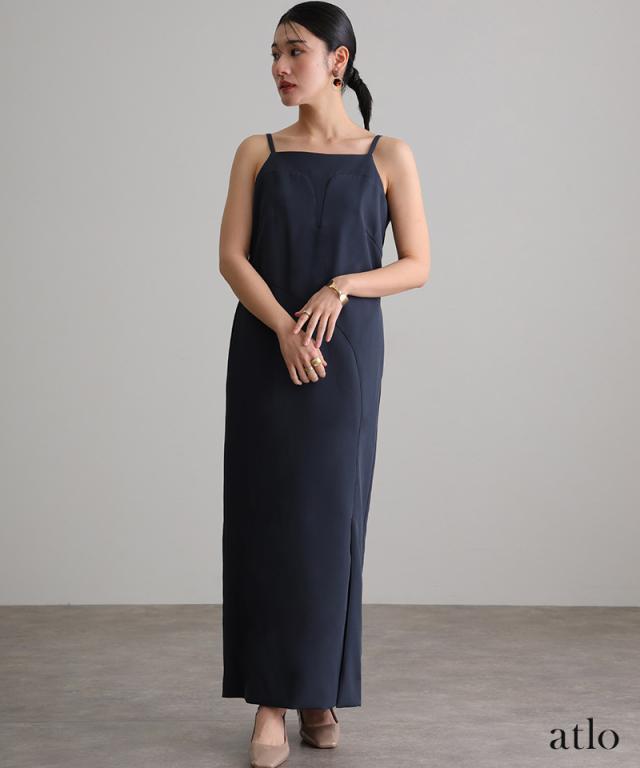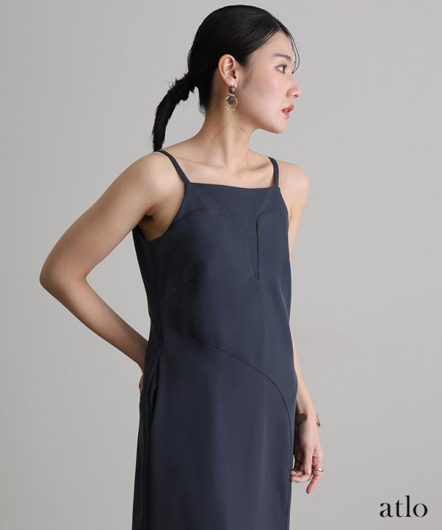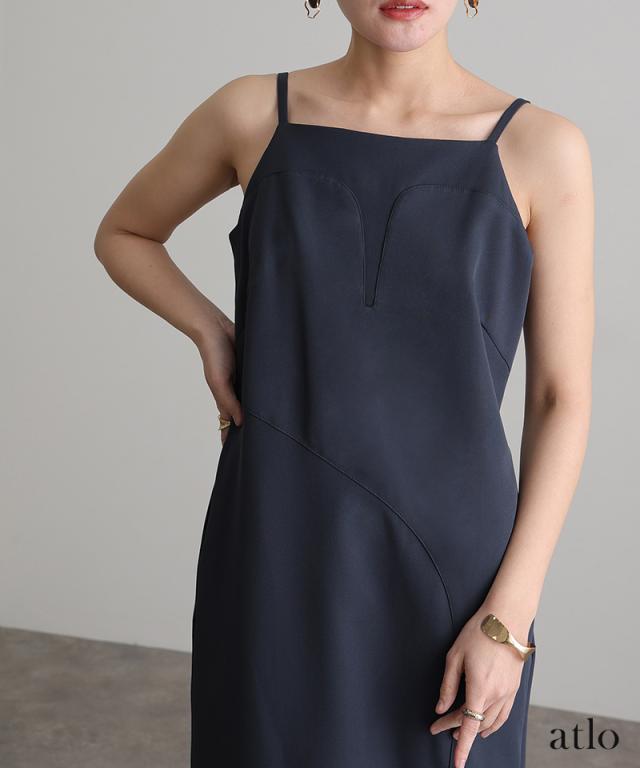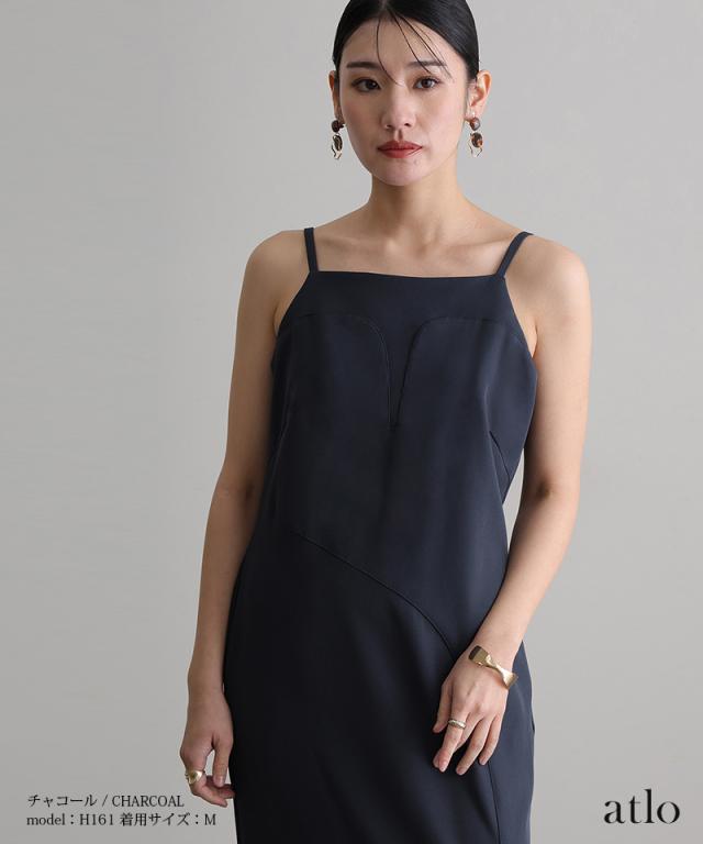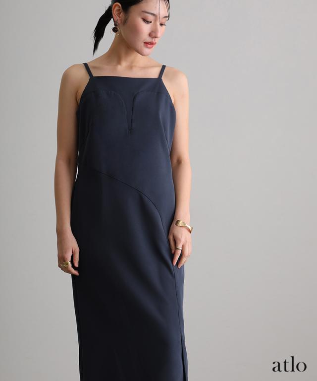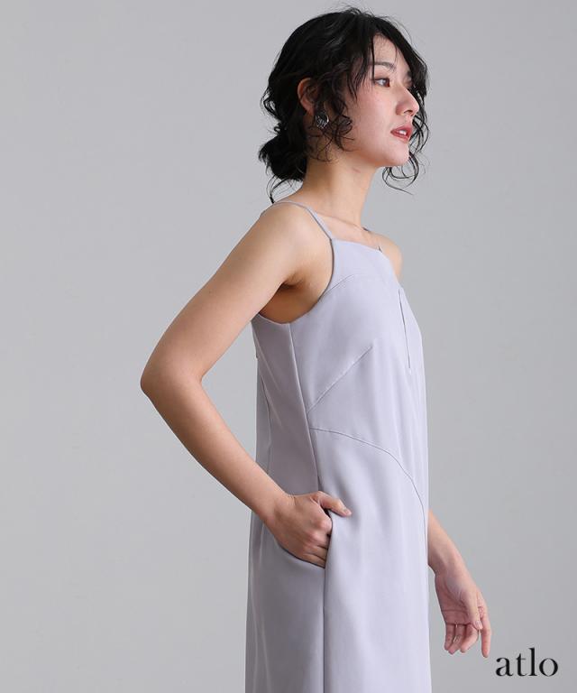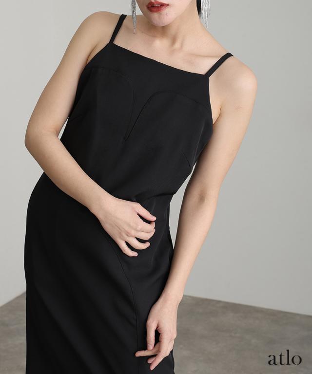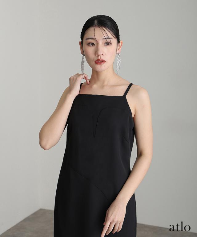 シンプルながらもエレガンスが際立つアシンメトリードレス。