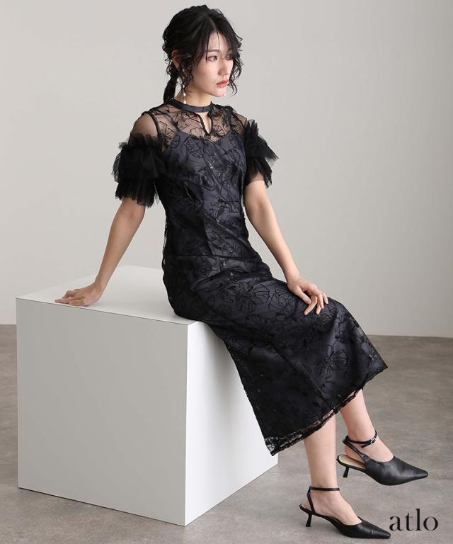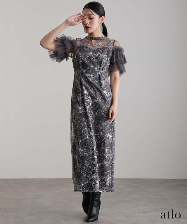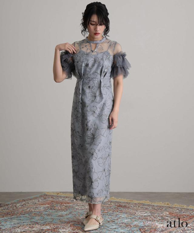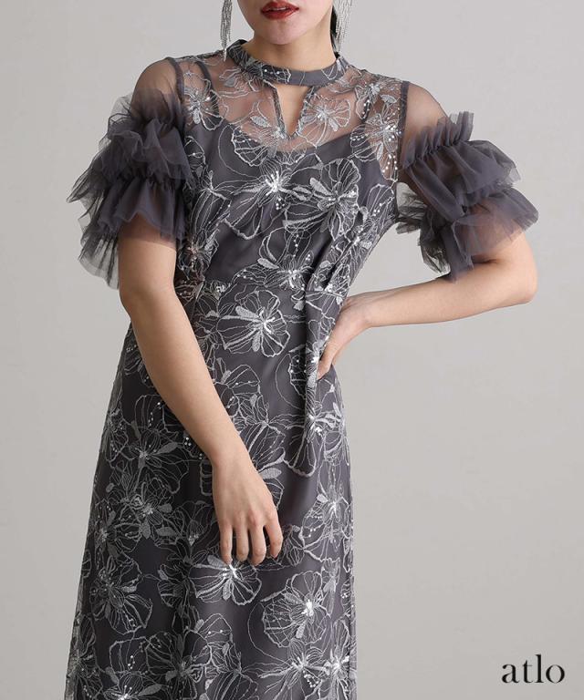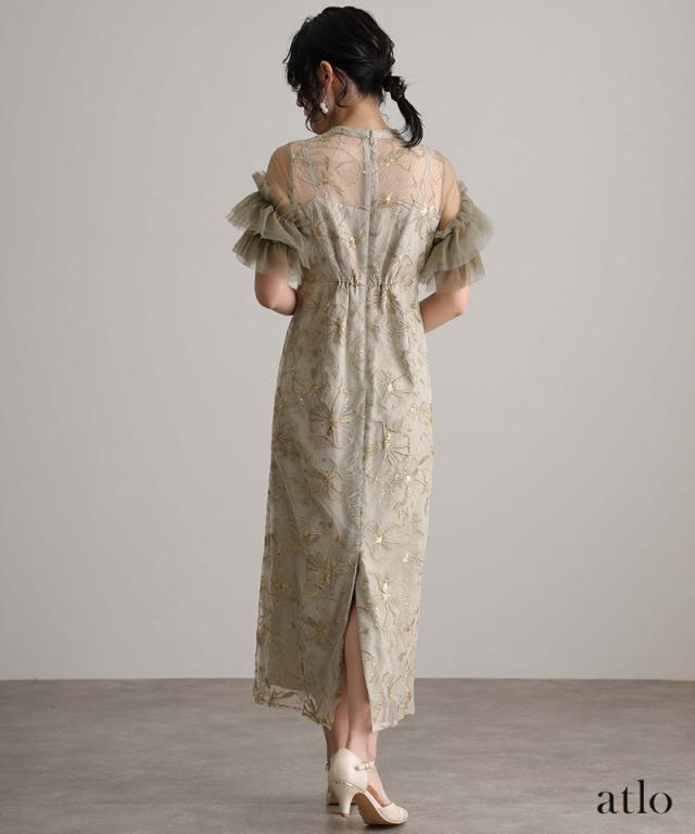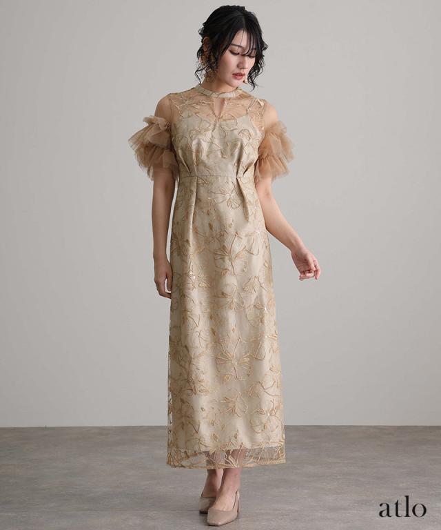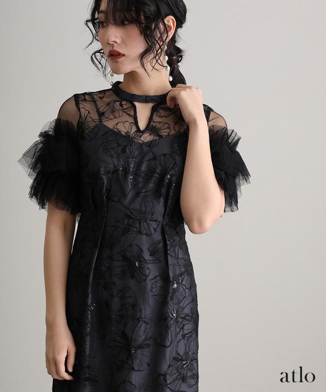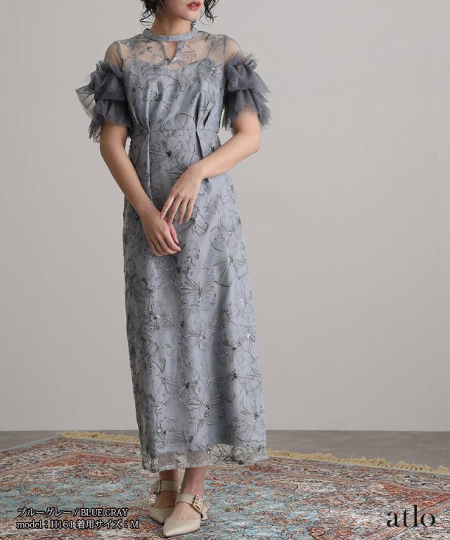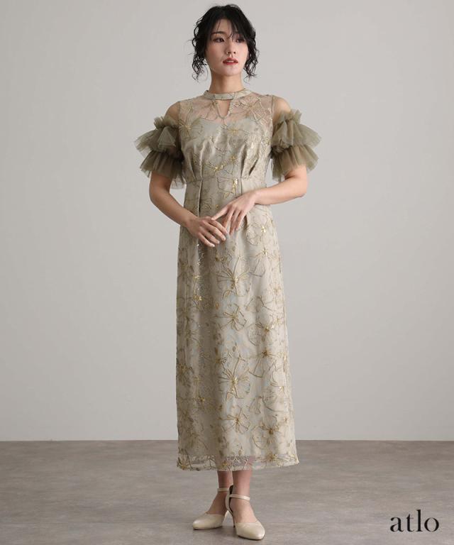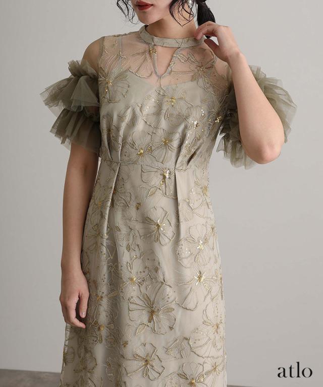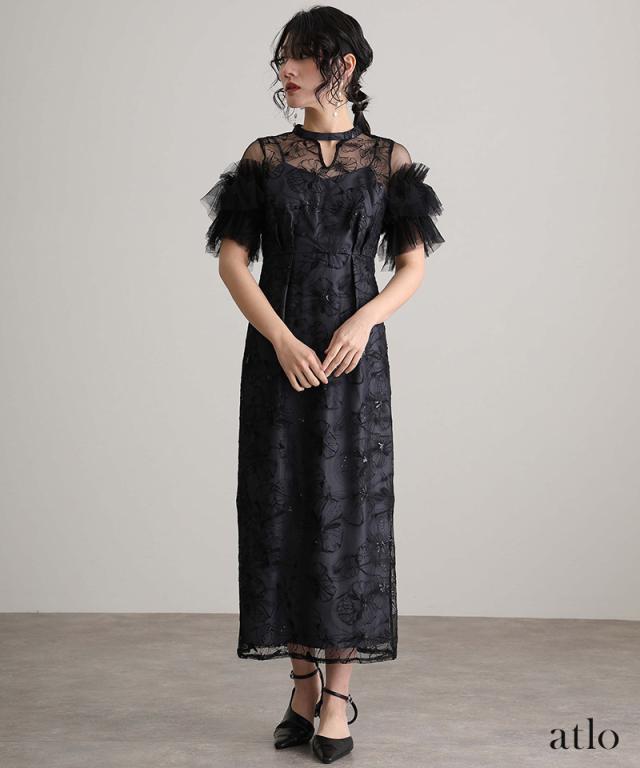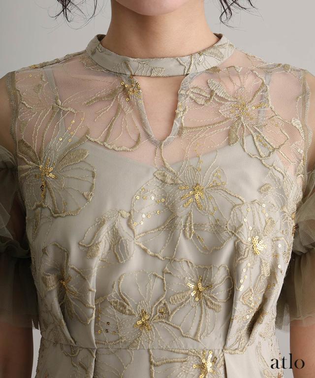 キーネック刺繍ドレス【229242078】10代・20代・30代・40代・50代・ドレスワンピ・フォーマルワンピ・パンツドレス・服装・ワンピース・ドレスカジュアル・ブランド・七分袖・長袖・ロング・膝丈・薄手・厚手・無地・刺繍・脚長効果・伸縮性・キレイめ・着やせ・体型カバー・スタイルアップ・レース・リボン・ドレープ・小さいサイズ・3Lや4L・かっこいい・かわいい・即日発送・送料無料・結婚式・婚活・披露宴・顔合わせ・発表会・演奏会・二次会・同窓会・お呼ばれ・食事会・謝恩会・親族・七五三・お宮参り・冠婚葬祭・弔事・女子会・韓国・デート・入学式・卒業式・入園式・卒園式・ママ・ピアノ・マタニティー・セレモニー・セレブ・パーティー