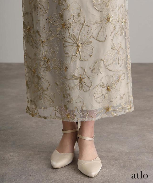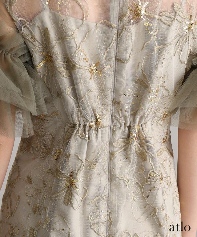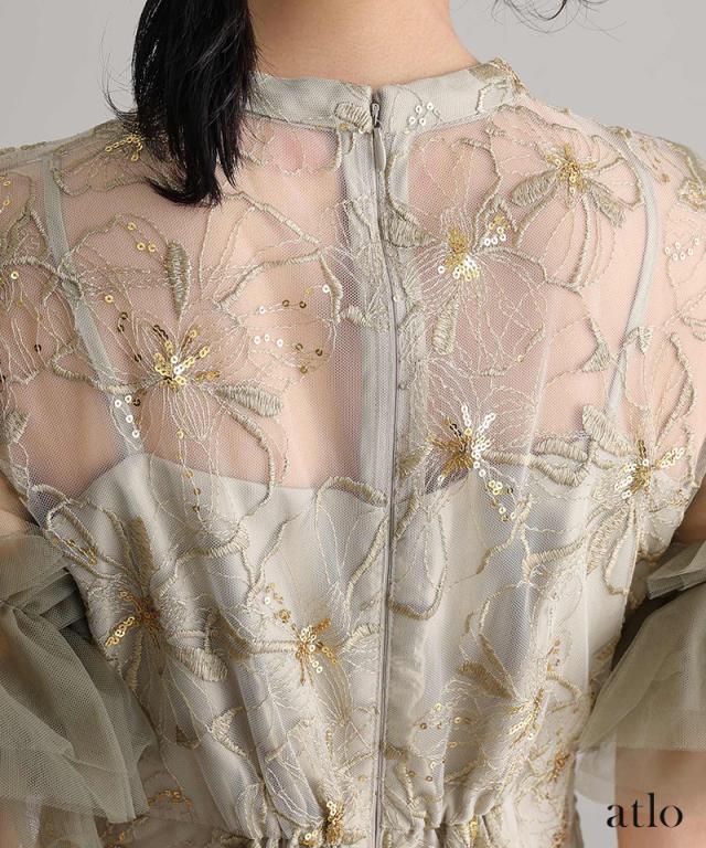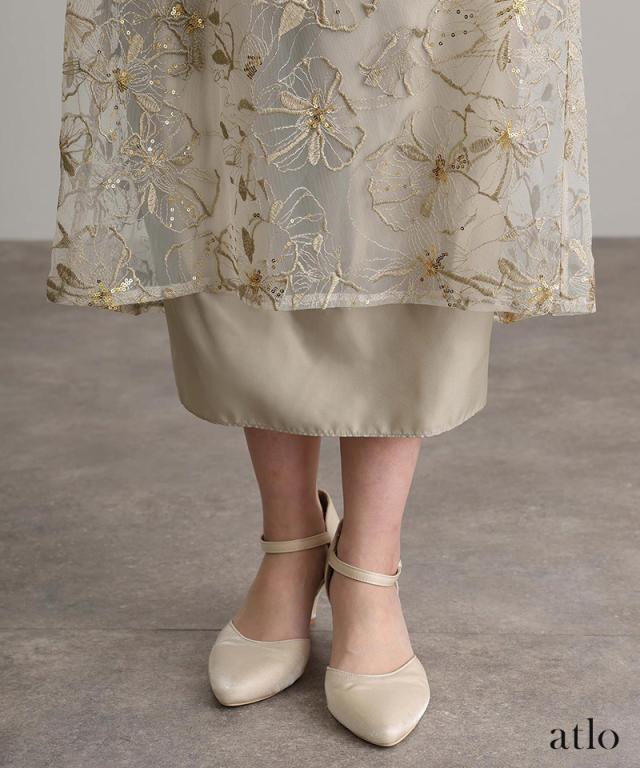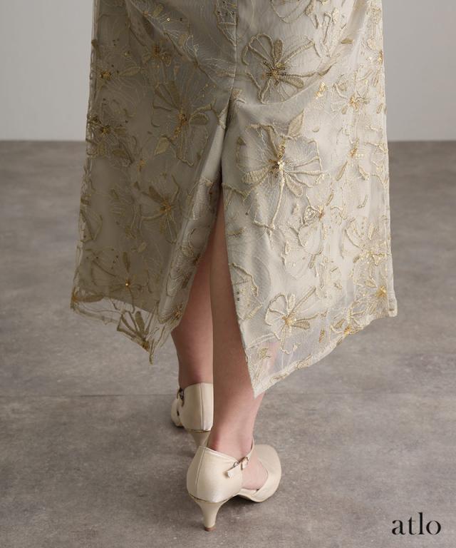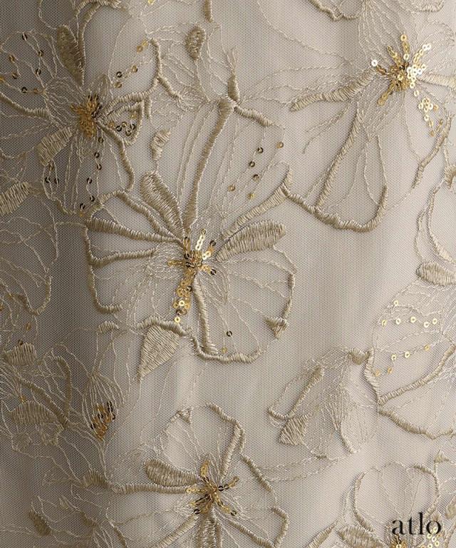 花柄刺繍レースにスパンコールを散りばめた華やかなデザイン。