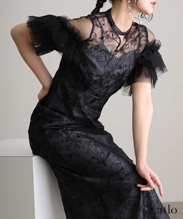 229242078 スパンコール 刺繍レース ワンピース オケージョン パーティードレス かっこいい 大きいサイズ フォーマルドレス 結婚式 10代 20代 30代 小柄 ドレス 韓国 体型カバー フォーマル