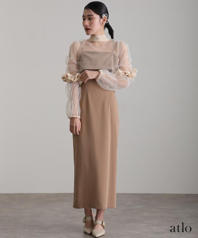 透け感のあるトップスで重くなりすぎず、女性らしさを引き立てます。