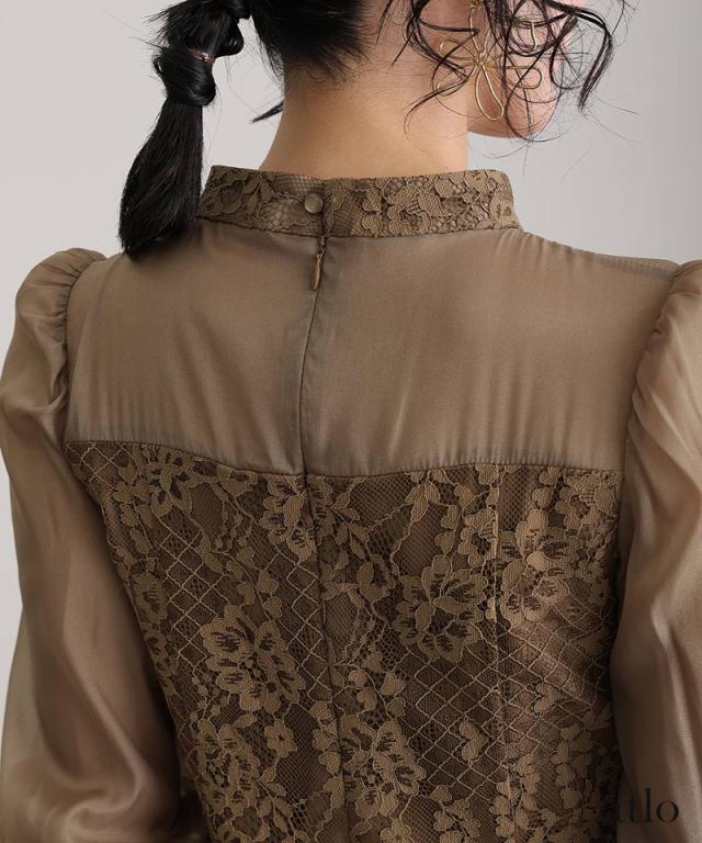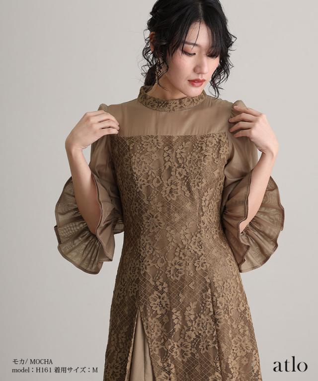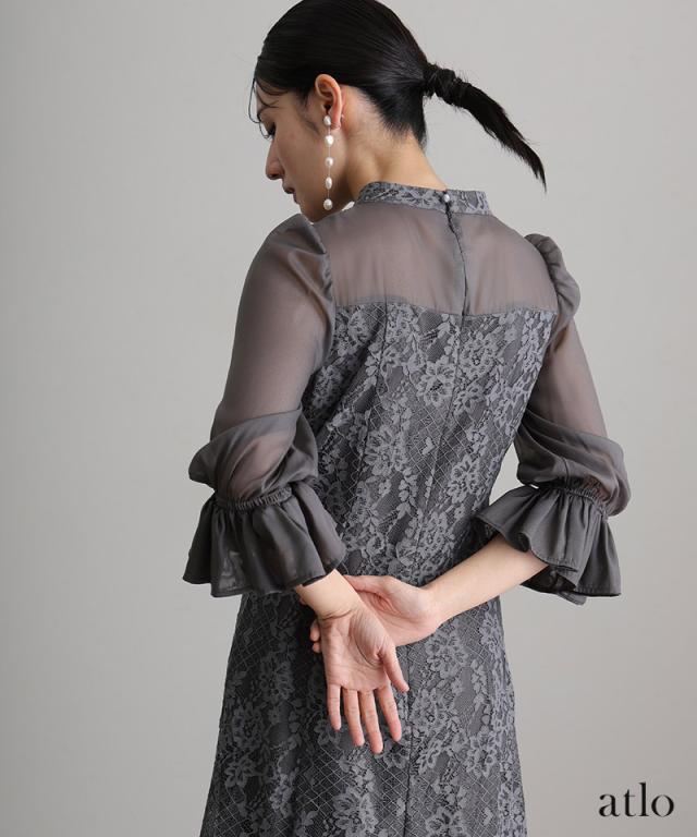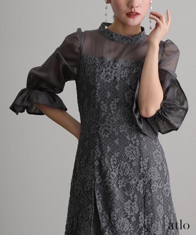 レースとオーガンジー素材が組み合わさった華やかなドレス。