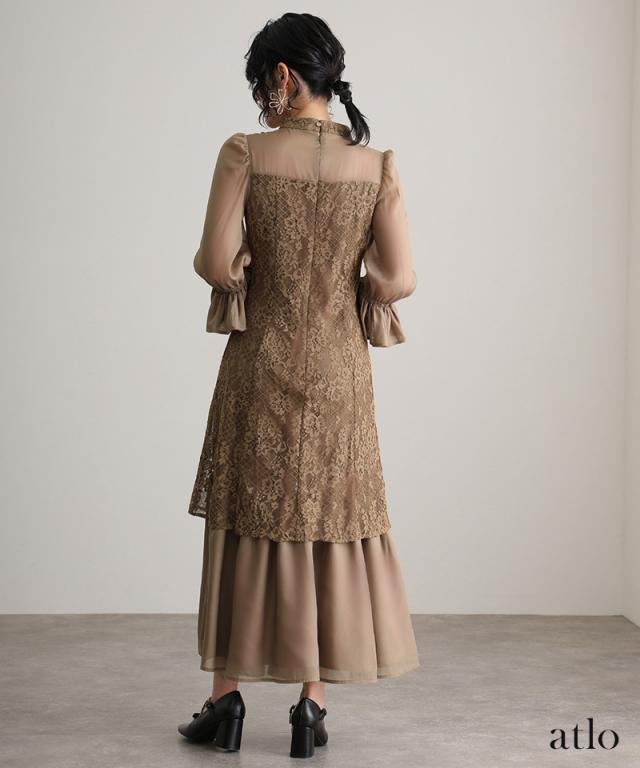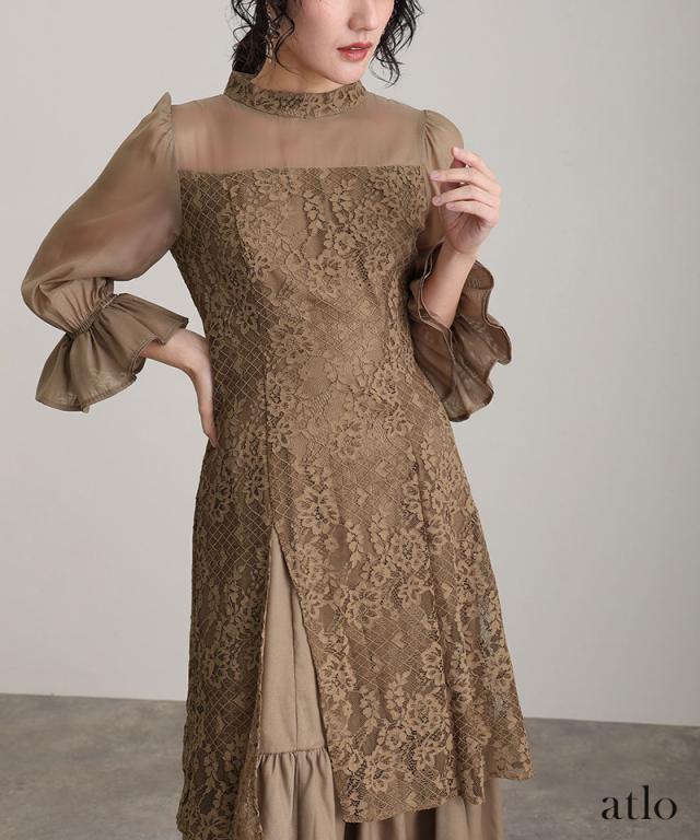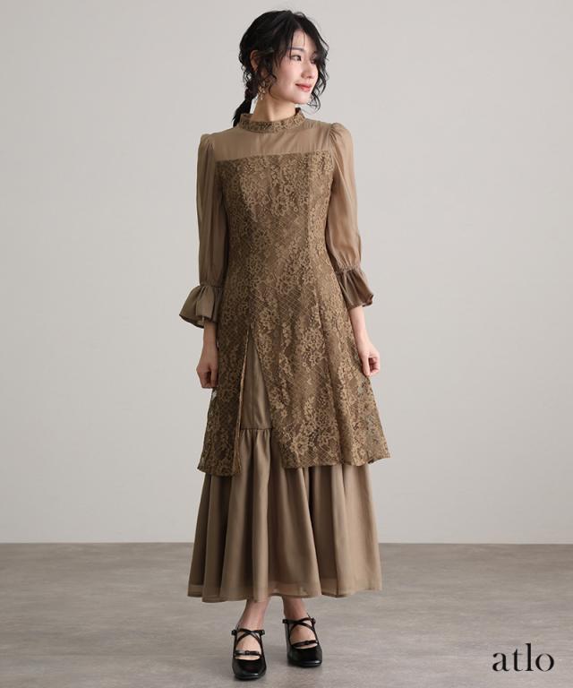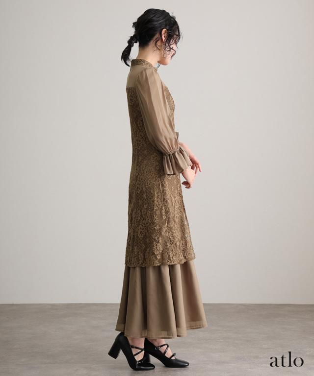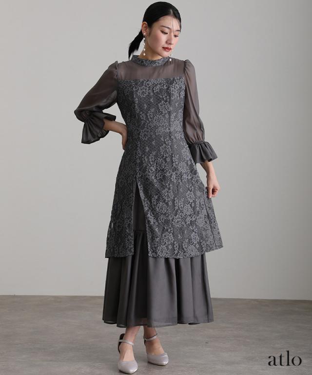 レースレイヤードワンピ—ス【289242122】10代・20代・30代・40代・50代・ドレスワンピ・フォーマルワンピ・パンツドレス・服装・ワンピース・ドレスカジュアル・ブランド・七分袖・長袖・ロング・膝丈・薄手・厚手・無地・刺繍・脚長効果・伸縮性・キレイめ・着やせ・体型カバー・スタイルアップ・レース・リボン・ドレープ・小さいサイズ・3Lや4L・かっこいい・かわいい・即日発送・送料無料・結婚式・婚活・披露宴・顔合わせ・発表会・演奏会・二次会・同窓会・お呼ばれ・食事会・謝恩会・親族・七五三・お宮参り・冠婚葬祭・弔事・女子会・韓国・デート・入学式・卒業式・入園式・卒園式・ママ・ピアノ・マタニティー・セレモニー・セレブ・パーティー