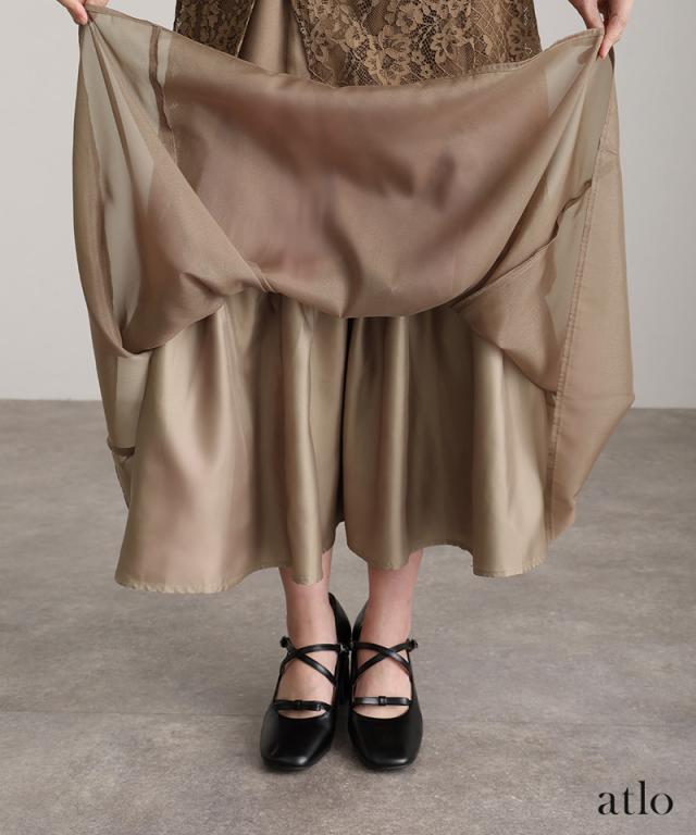 オーガンジーのスカートが柔らかく動くことで立体的に見え、女性らしさも演出。