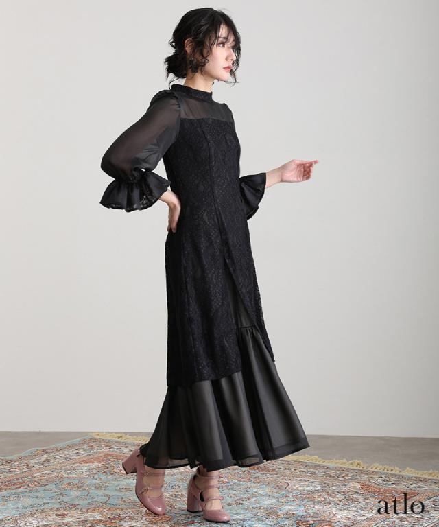 289242122 オーガンジー ベルスリーブ レイヤード パーティードレス オケージョン ワンピース 結婚式 かっこいい 大きいサイズ 小柄 ドレス フォーマルドレス フォーマル 小さいサイズ 10代