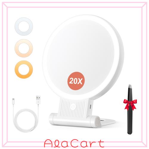 Auxmir 女優ミラー 鏡 卓上 拡大鏡 20倍と等倍 72個LEDライト付き 3光色 折りたたみ式 手鏡 明るさ無段階調光 角度調整可能 USB充電式 20
