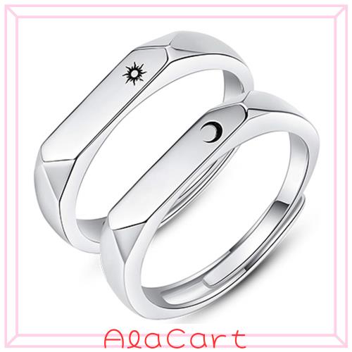 083基地 太陽 月 ペアリング カップルリング フリーサイズ 2枚セット シルバー925 ギフトボックス 結婚指輪 婚約指輪 レディースリング