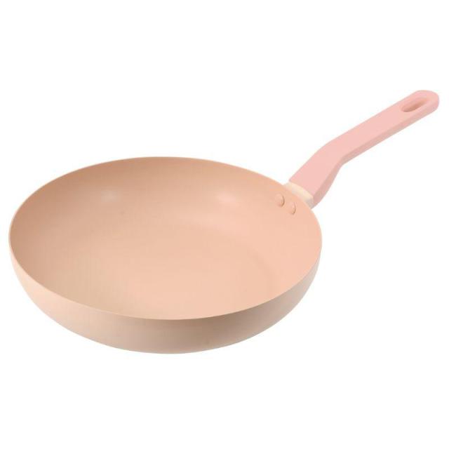〇フライパンはこびりつきにくくお手入れ簡単な、独自のペールピンクふっ素コーティングを採用