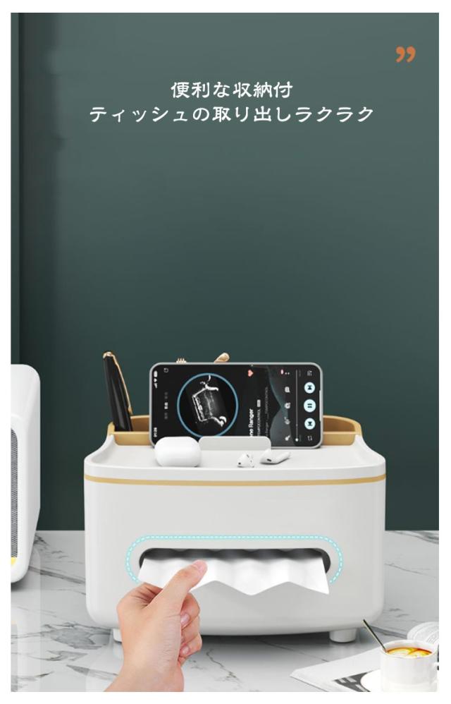 | おしゃれでかわいい 収納付き多機能ティッシュケース テーブル周りの小物が収納できてすっきり片付く、 リモコンが収納できるティッシュケース リモコンラックや小物入れにもなる収納付き、多機能ティッシュケース。 ふた付きのおしゃれで便利なティッシュボックスです。 ●シンプルかつ素朴なカラーで どこに置いてもなじみます ・デスク デスク周りの差し色としても スルーはピッタリ! ・ドレッサー 化粧台に置けば 化粧道具を置くのにピッタリ ・寝室 ベッドサイドに置けば スマホスタンドにも◎ ●便利な収納付 ティッシュの取り出しラクラク ●内蔵されたハンドルは スマホスタンドとしても使用可! ●落下耐性 しっかりした作りで 丈夫で長持ち! ●滑り止め付 底の部分には滑り止めがついています。 テーブルに傷がつくのも防ぎます。 | |