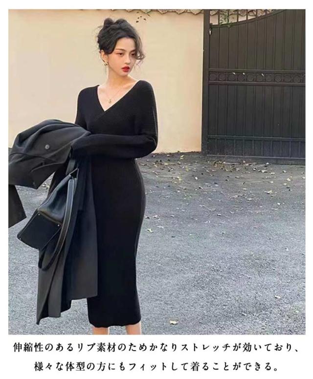ニットワンピース パーティードレス タイトニットワンピース タイト ワンピース レディース 秋 長袖 春 Vネック タイトスカート 大人 大きいサイズ タイトニットワンピース きれいめ 結婚式 お呼ばれ 二次会 セクシー