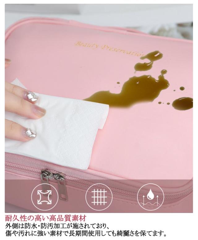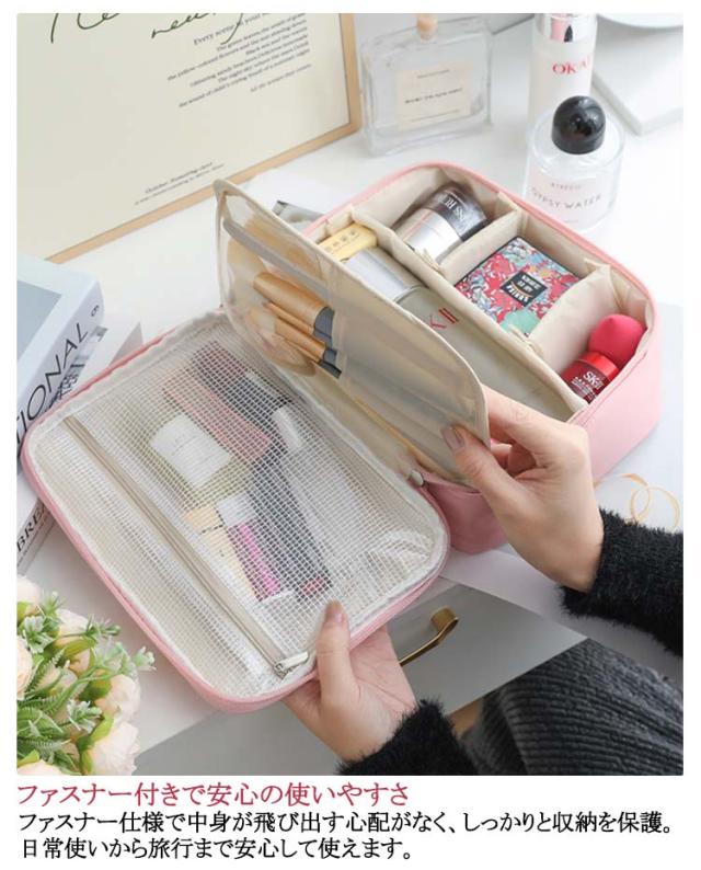 | コンパクトで持ち運びやすい設計 軽量かつ小型のデザインで、旅行や外出先でも手軽に持ち運び可能。ハンドル付きで移動もスムーズです。 大容量で整理整頓が簡単 多層式の収納スペースがあり、化粧品、スキンケア用品、小物などを効率的に収納できます。散らかる心配がありません。 耐久性の高い高品質素材 外側は防水・防汚加工が施されており、傷や汚れに強い素材で長期間使用しても綺麗さを保てます。 おしゃれで上品なデザイン シンプルで洗練されたデザインが特徴。どんな場面でも使いやすく、インテリアとしても映えます。 ファスナー付きで安心の使いやすさ ファスナー仕様で中身が飛び出す心配がなく、しっかりと収納を保護。日常使いから旅行まで安心して使えます。 | |