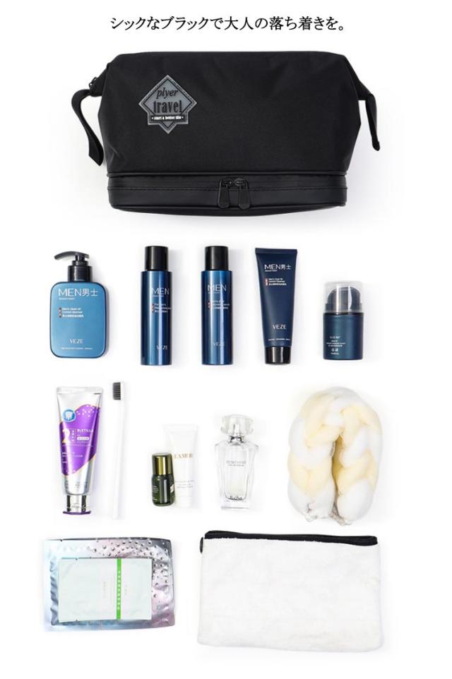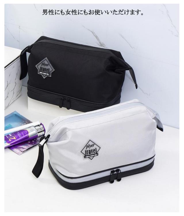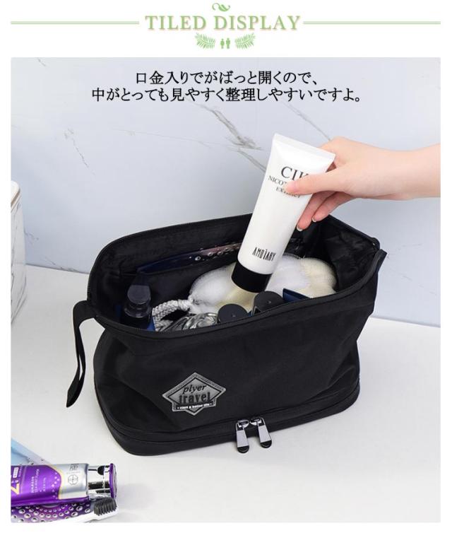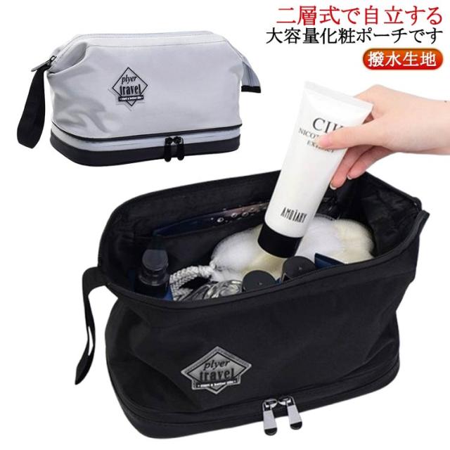 大容量 洗面用具 機能的 旅行ポーチ 収納 メンズ 自立 撥水 大きめ 化粧ポーチ 男性 トラベルポーチ ファスナー 大きく開く 二層 メイクボックス 化粧品収納 持ち運び ブラシ入れつき デイリー 普段 ウォッシュバッグ
