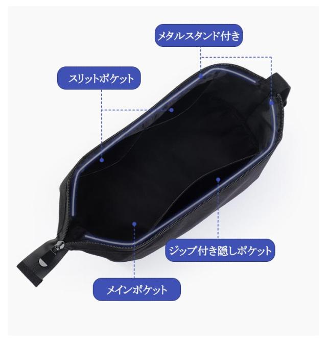 | 二層式で自立する大容量化粧ポーチです。 口金入りでがばっと開くので、中がとっても見やすく整理しやすいですよ。 上段にはファスナーポケットとメッシュポケット。 下段にはブラシやくしなどを収納できるポケットと粉が飛び散らないフタつき。 男性にも女性にもお使いいただけます。 シックなブラックで大人の落ち着きを。 | |