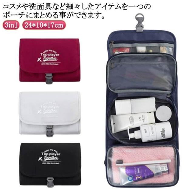 吊り下げ トラベルポーチ 便利グッズ 取り外し 3in1 壁掛け 化粧ポーチ 洗面ポーチ 収納ポーチ 旅行 洗面用具 旅行用品 インナーケース フック付き バスルームポーチ 大容量 持ち運び便利 吊り下げポーチ 小物入れ 出張