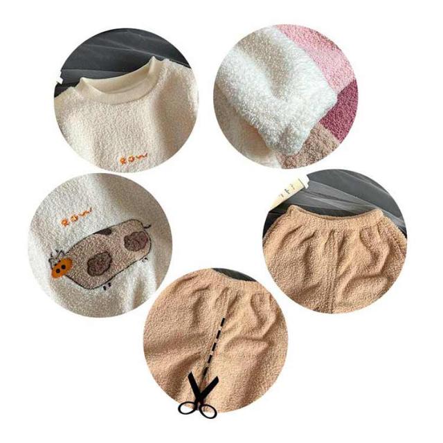 冬 女児 男の子 キッズ 女の子 暖かい 部屋着 長袖 冬用 ルームウェア 柔らかい 上下セット ふわふわ ガールズ 可愛い 動物 韓国子供服 寝巻き パジャマ もこもこ ナイトウェア 寝間着 90 100 110 120 130 140 150
