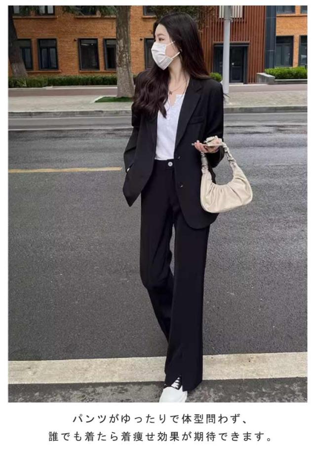 | ジャケット+ズボンの2点セットパンツスーツ。 セットアップなのでスタイリングも迷わずこれ一つで便利なアイテムです。 着こなし幅が広がり、これからの季節に大活躍できる存在感のあるスーツセットです。 ジャケットは立体裁断により着心地とタイトなラインを共存させました。 両側にポケットが二つ付きで、レシート、ティッシュ、名刺などの小物を収納するのも便利です。 パンツがゆったりで体型問わず、誰でも着たら着痩せ効果が期待できます。 | |