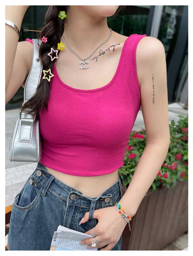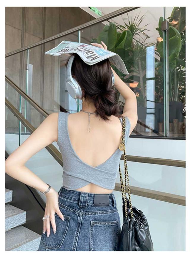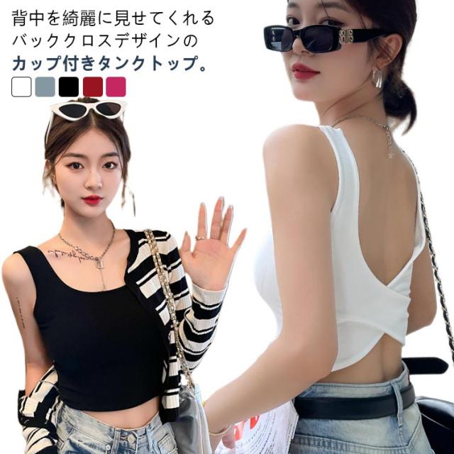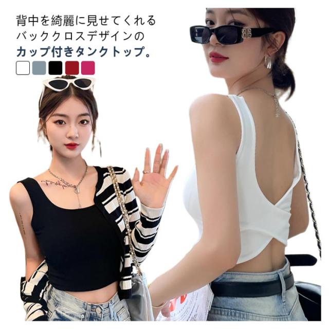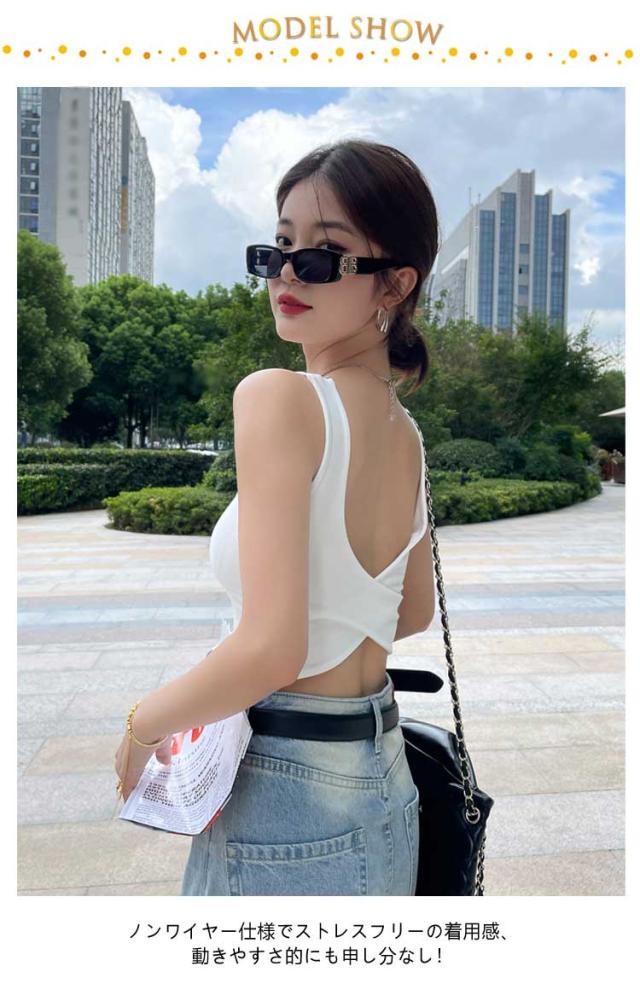 ショート丈 ノンワイヤー カップ付き バッククロス ブラトップ ブラトップ 美背 ブラキャミ おしゃれ へそ出し カップ付き 美胸 楽ちん ノンワイヤー シンプル ブラタンク 可愛い さらさら 軽量 ストレッチ