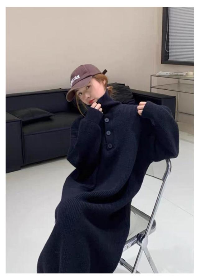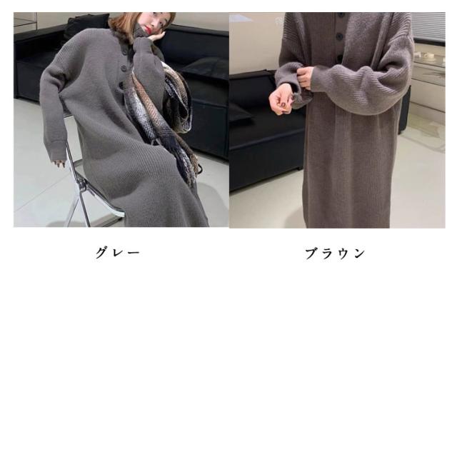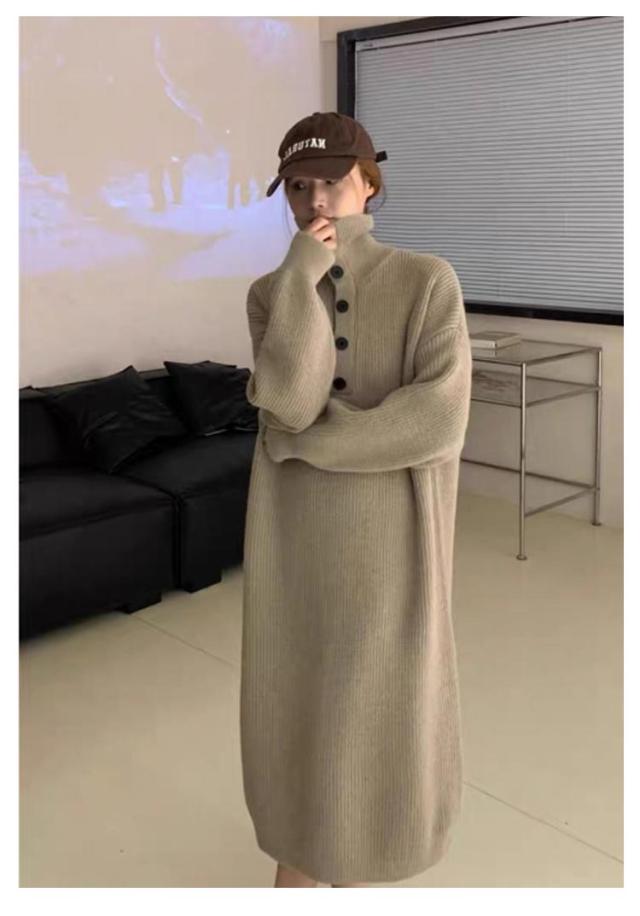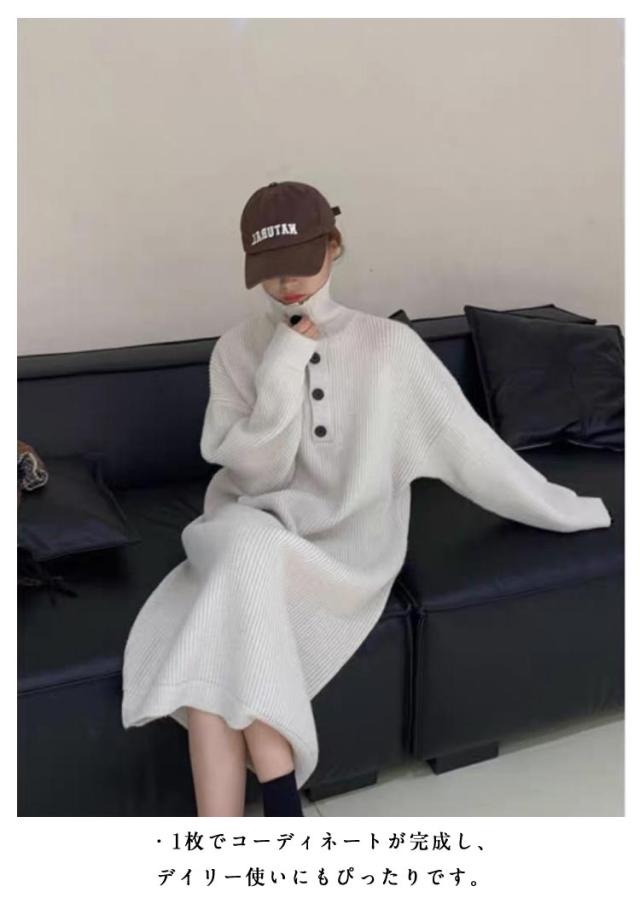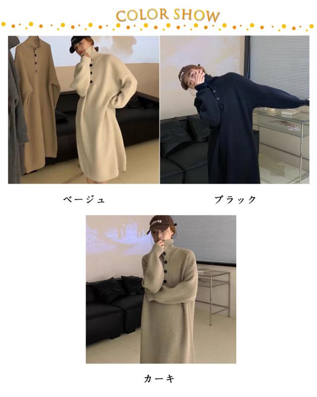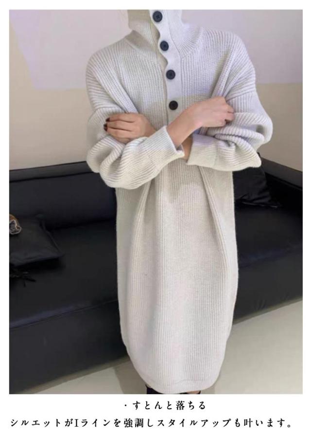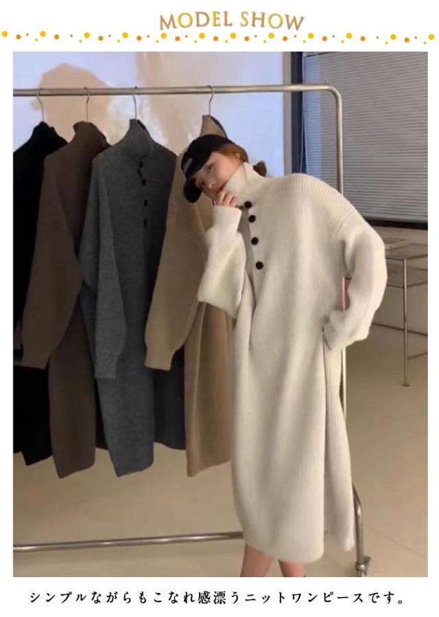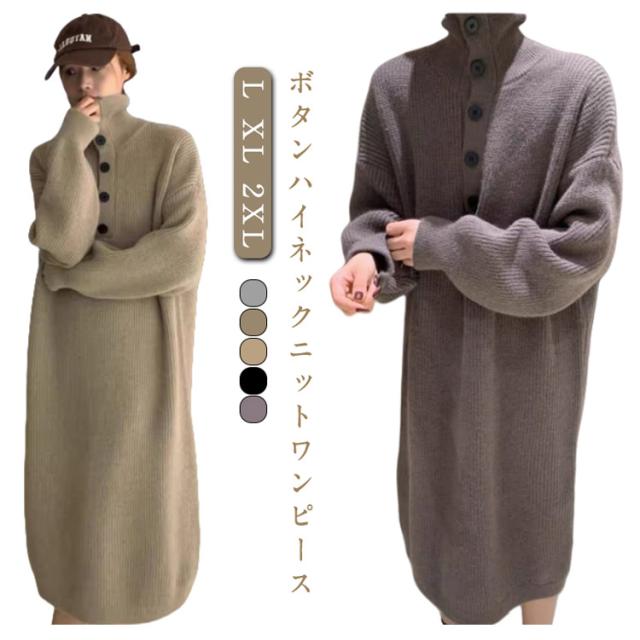 ワンピース 長袖 シンプル ロング丈 ハイネック レディース ニットワンピース カジュアル ニット おしゃれ リブニット 無地 オフィス 着回し 秋