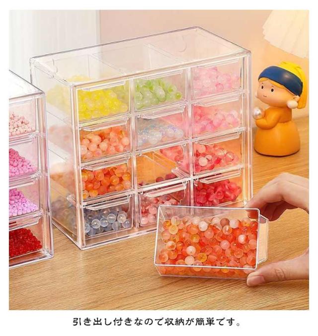 アクセサリーケース ビーズケース 小物 ビーズケース 小物入れ パーツケース 9マス 3段 ビーズ入れ 12マス 小分け ネイル ビーズケース 引き出し ビーズキャビネット 収納ケース パーツ 透明 小物ケー 詰め替え容器 小分けケース