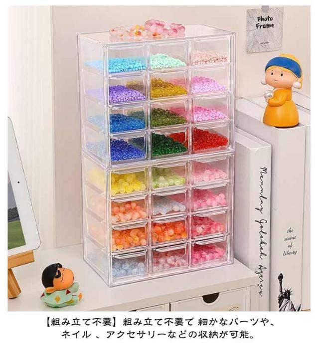 | 【ビーズケース】 ビーズなどの小物を収納するのに最適な収納ケース 引き出し付きなので収納が簡単です。 透明なので何がどこにあるのか分かりやすい仕様になっています。 【組み立て不要】組み立て不要で 細かなパーツや、ネイル 、アクセサリーなどの収納が可能。 透明なボックスは中身が一目でわかり、アクセサリーや小物を効率的に管理できます。 ビーズやパーツを小分けして収納でき、ネイルアートや手作りアクセサリーに最適です。 引き出し式の構造で、使いやすさも兼ね備えています | |