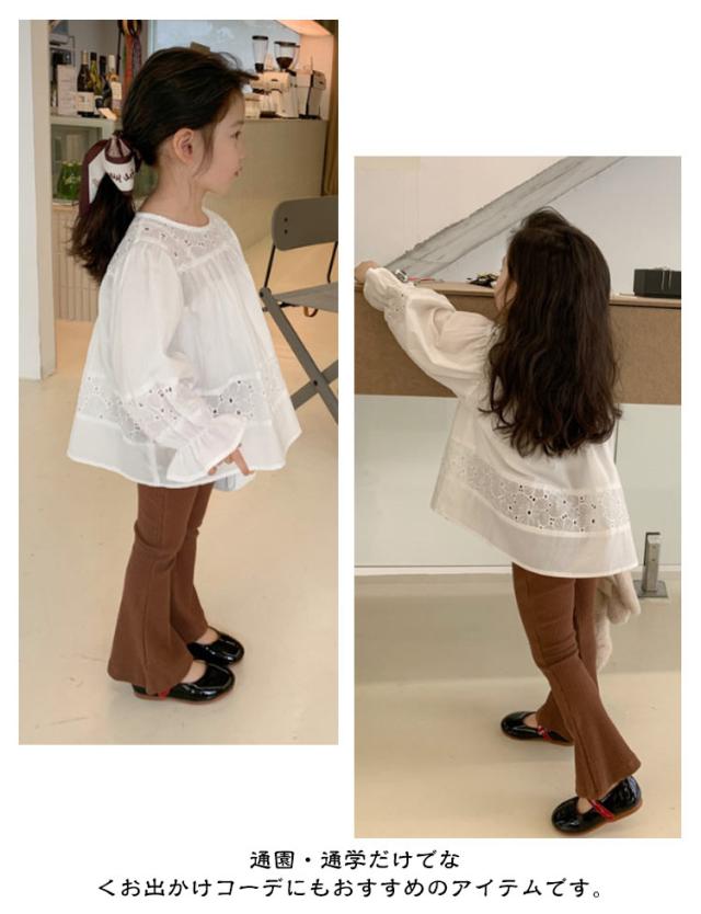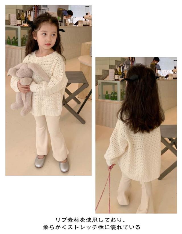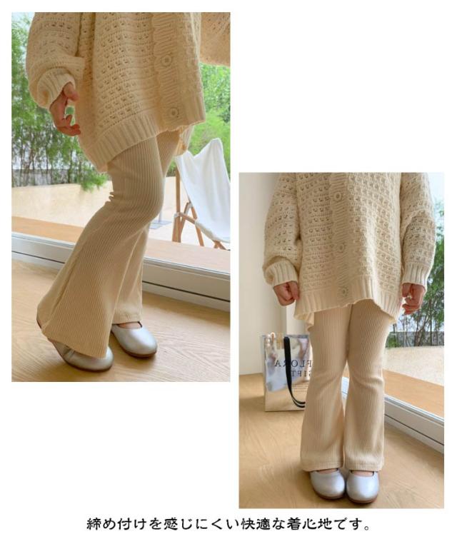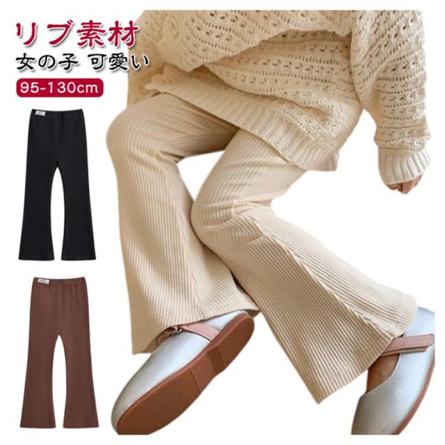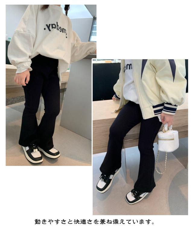 子供服 フレアパンツ ストレッチ やわらか リブ素材 ボトムス フレアパンツ 女の子 春 レギンスパンツ キッズ 秋 長ズボン ズボン 黒 ベージュ ブラック 無地 可愛い