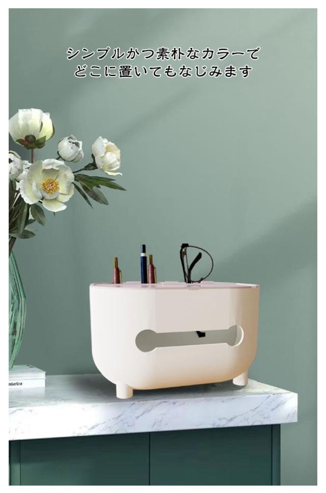 | おしゃれでかわいい 収納付き多機能ティッシュケース テーブル周りの小物が収納できてすっきり片付く、 リモコンが収納できるティッシュケース リモコンラックや小物入れにもなる収納付き、多機能ティッシュケース。 ふた付きのおしゃれで便利なティッシュボックスです。 ●シンプルかつ素朴なカラーで どこに置いてもなじみます ・デスク デスク周りの差し色としても スルーはピッタリ! ・ドレッサー 化粧台に置けば 化粧道具を置くのにピッタリ ・寝室 ベッドサイドに置けば スマホスタンドにも◎ ●便利な収納付 ティッシュの取り出しラクラク ●内蔵されたハンドルは スマホスタンドとしても使用可! ●落下耐性 しっかりした作りで 丈夫で長持ち! ●滑り止め付 底の部分には滑り止めがついています。 テーブルに傷がつくのも防ぎます。 | |