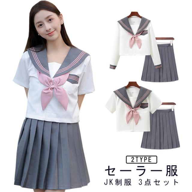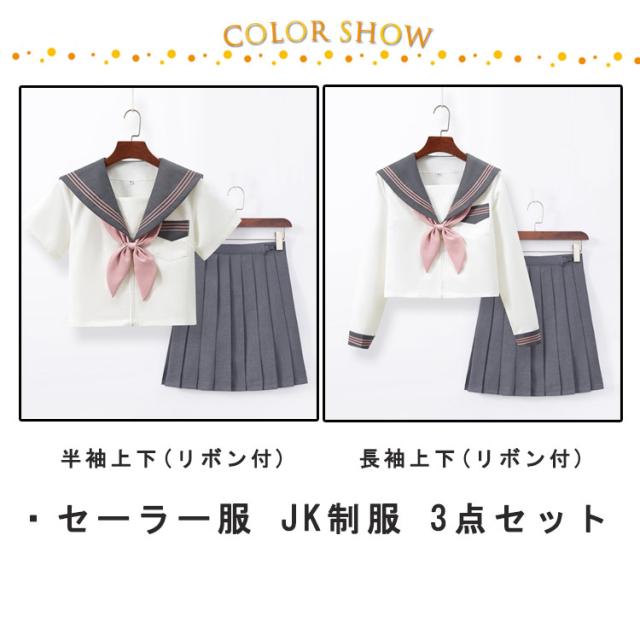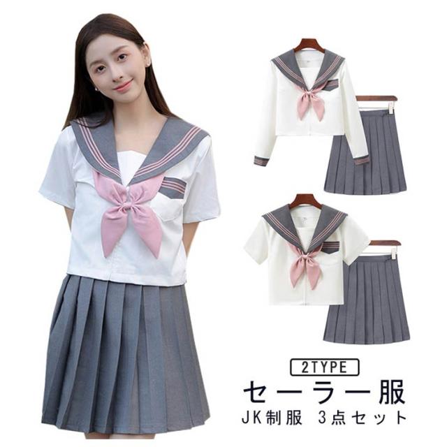 3点セット 半袖 レディース JK制服 衣装 制服 リボン付き 長袖 セーラー服 プリーツスカート 上下セット コスプレ スクール コスチューム 仮装 女子高生