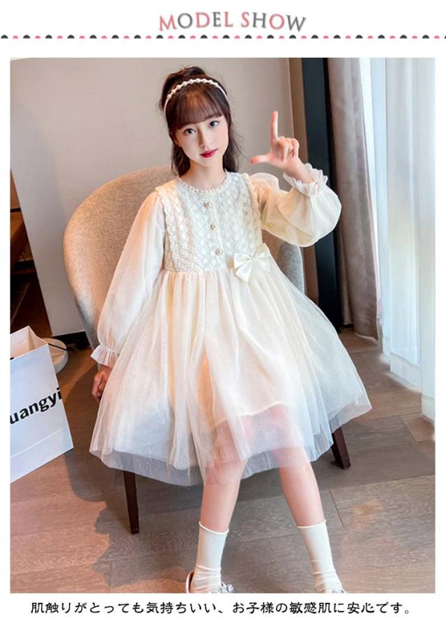 長袖 ワンピース 130 おしゃれ チュールワンピース キッズ 子供 ドレス フリルワンピース フレアワンピース ピアノ発表会 女の子 春秋 チュール フォーマル ジュニア レース こどもの日 キッズ 結婚式 120 七五三 140 150 160