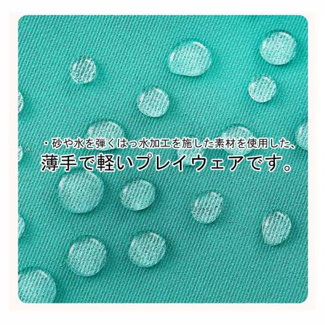 | ・ベビーのお砂場遊びに! ・砂や水を弾くはっ水加工を施した素材を使用した、薄手で軽いプレイウェアです。 ・ゆったりとした身幅で動きやすく、袖口と裾にゴムが入っているので 砂場で思いっきり遊んでも、砂が入りにくくなっています。 ・お洗濯に強いしっかりした生地なので、 汚れを気にせず思いっきり遊べます♪ | |