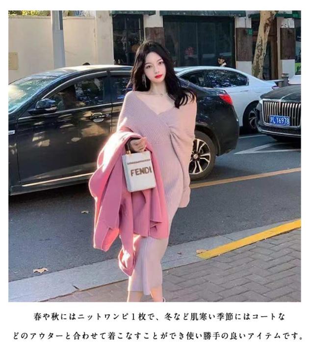 結婚式 きれいめ レディース ロング丈 ワンピース ニットワンピース 秋 Vネック 長袖 タイトニットワンピース タイトスカート 大人 大きいサイズ パーティードレス タイトニットワンピース タイト お呼ばれ 二次会 セクシー