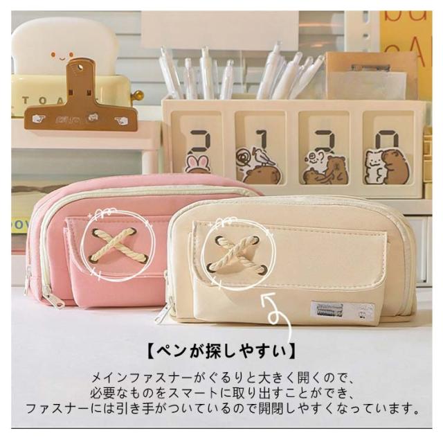 | 【たっぷり入る大容量】ペン類が約70本以上入る大容量デザイン。消しゴム、付箋、ハサミ、定規、メジャー、修正テープなどの小物もたっぷり収容できます。 ※収容数はペンの種類によって異なります。 【ペンが探しやすい】メインファスナーがぐるりと大きく開くので、必要なものをスマートに取り出すことができ、ファスナーには引き手がついているので開閉しやすくなっています。 【小物を分類できるメッシュポケット付き】ふせんや定規などを分けて収納できるポケットがついています。 筆記具などと分けて収容できるので、小物が探しやすく汚れにくいので安心です。 【ペンケース以外の用途にも便利】 化粧ポーチとしても有効活用可能。いつも携帯するUSBメモリやスマートフォンの携帯充電器の機器類にも。常備薬や目薬、塗り薬などちょっとした小物入れにも。 | |