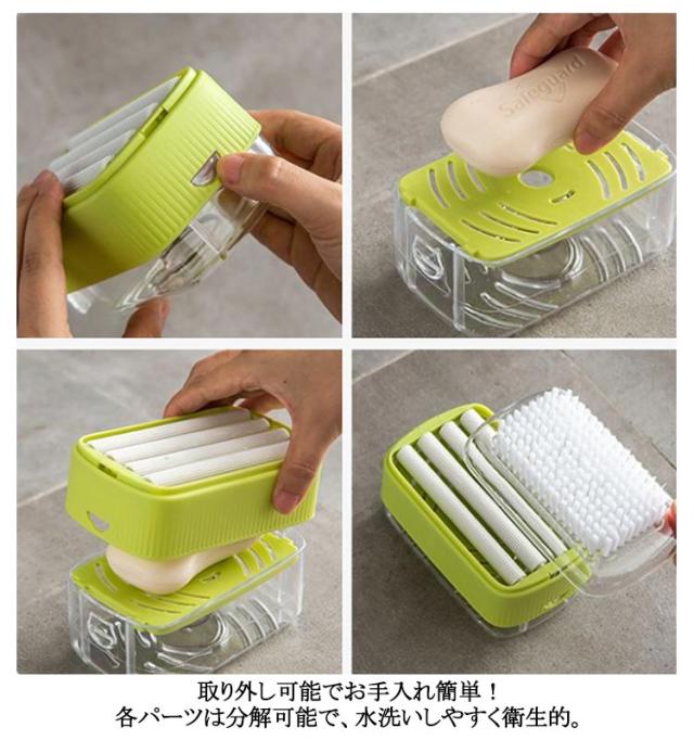 | 石鹸をセットし、ケースをコロコロ動かすだけで豊かな泡がすぐに作れます。 使い続けて小さくなった石けんもバネの力でしっかりとホールドして無駄なく使えます。 高品質なプラスチック製で、長く使える丈夫なデザイン。 取り外し可能でお手入れ簡単!各パーツは分解可能で、水洗いしやすく衛生的。 いままで置き場所に困っていた洗濯用石けんが、衣類洗い〜収納までこのケース一つで悩み解決! | |