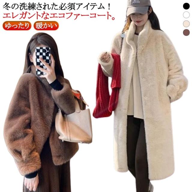 エコファー ファーコート コート レディース ふわふわ モコモココート ボアパーカー 防寒 防寒コート ボアブルゾン ハイネックフェイクファーコート ロング丈 冬 長袖 ゆったり 軽量 防風 選べる2丈 ふんわり 暖かい