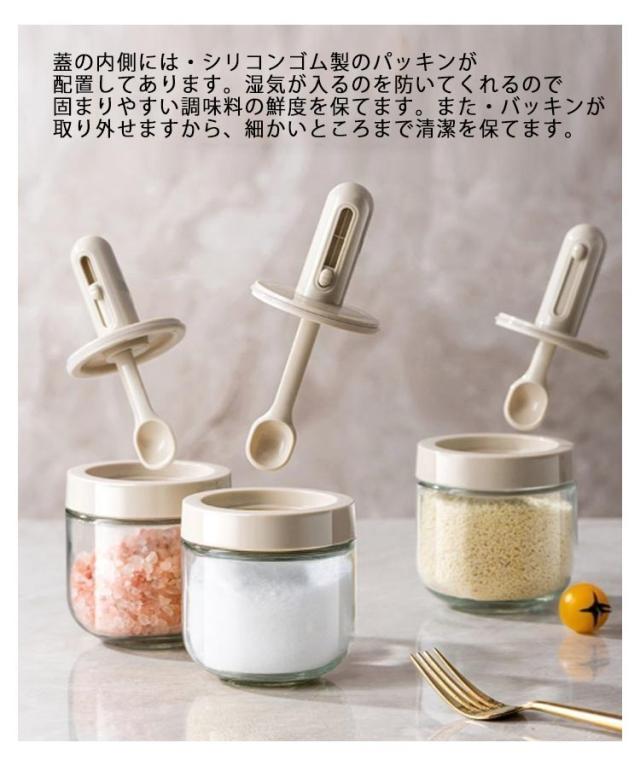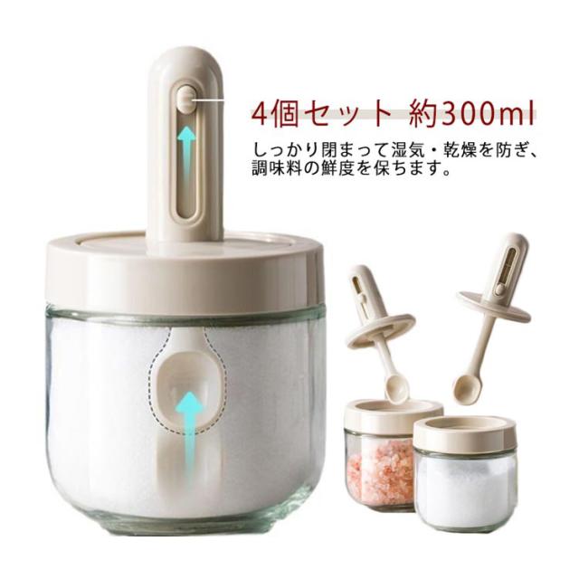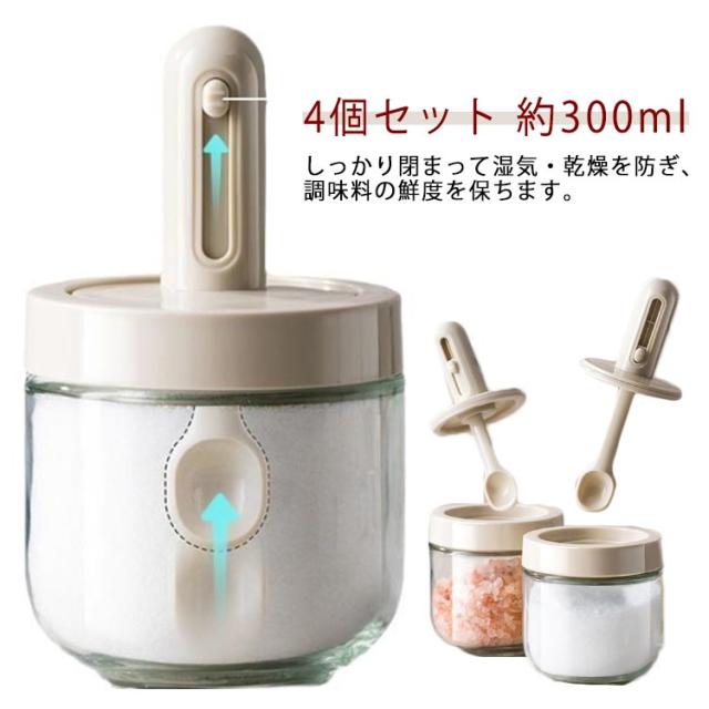 砂糖 塩 スプーン付き 塩入れ 調味料入れ 調味料ボトル 胡椒 約300ml スパイスボトル スパイス入れ 4個セット スリム ボトル キャンプ 4個セット 卓上 砂糖入れ おしゃれ かわいい 耐熱ガラス 使いやすい 収納 保存容器 湿気防止 新生活