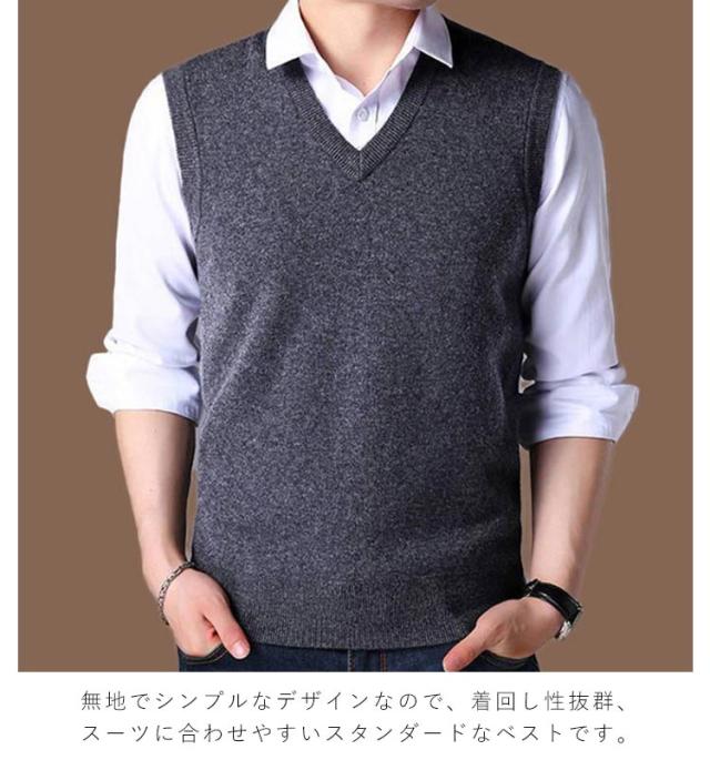 | 男性用の無地Vネックニットベスト ビジネスをオシャレに暖かく、いい男を演出するアイテム。 無地でシンプルなデザインなので、着回し性抜群、スーツに合わせやすいスタンダードなベストです。 着ぶくれせずすっきりと着こなせます。 な無地で礼装やフォーマルもOK | |