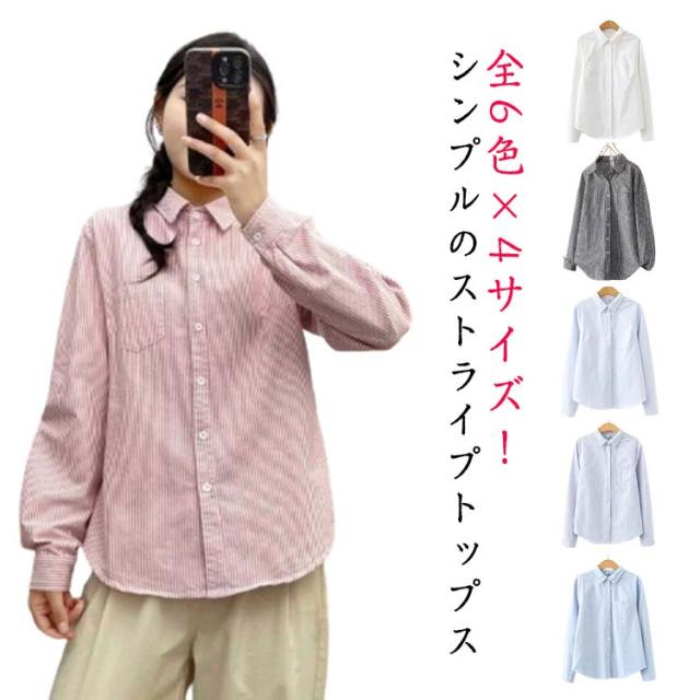 カラーシャツ レディース きれいめ シャツ 定番 ブラウス ナチュラル 無地 シャツ ストライプシャツ チュニック ストライプ柄 羽織 トップス 大きいサイズ 重ね着 大人 女性 長袖シャツ シンプル おしゃれ カジュアル