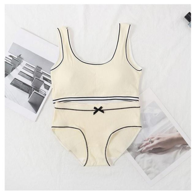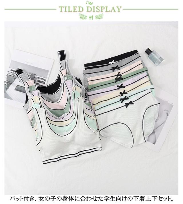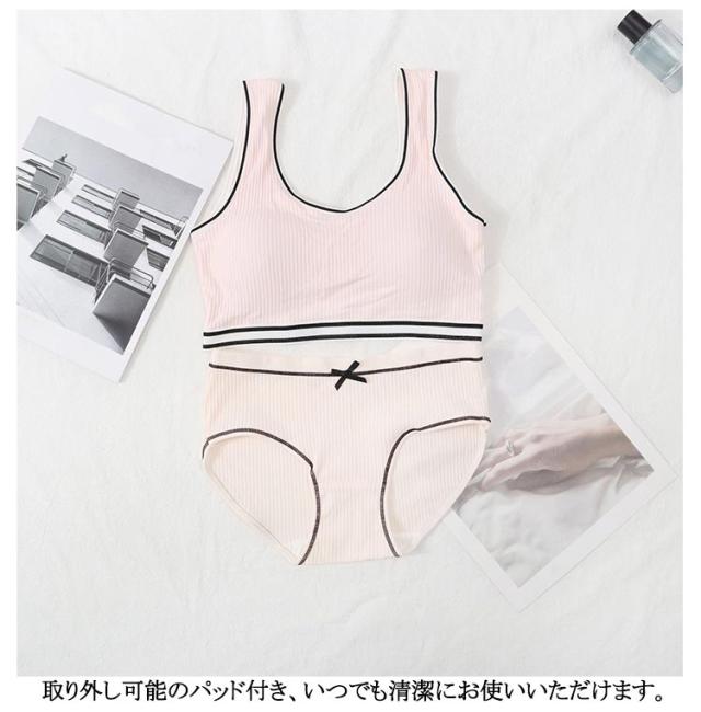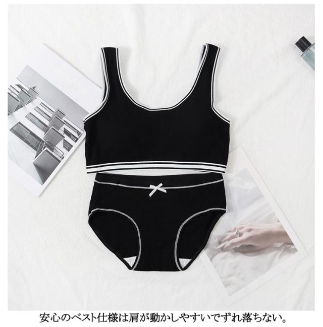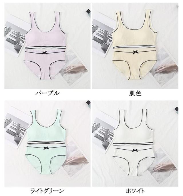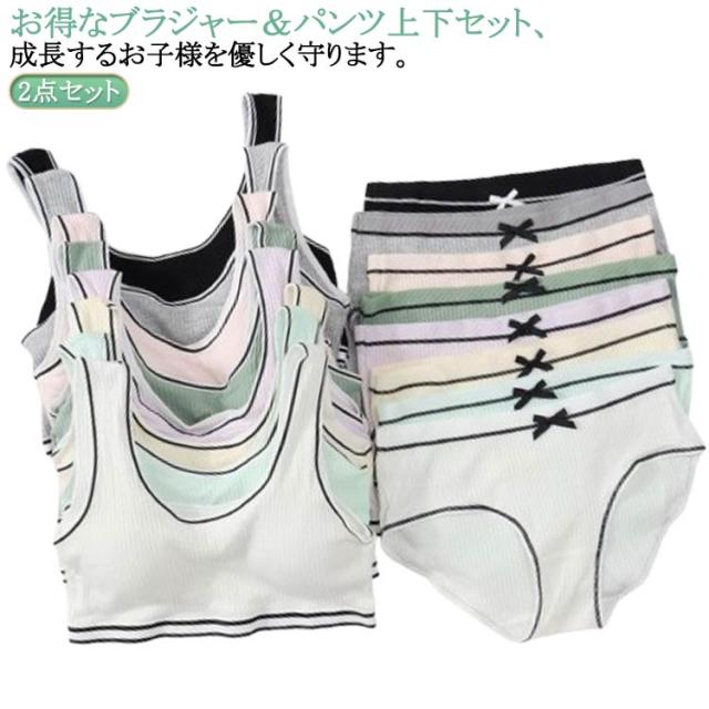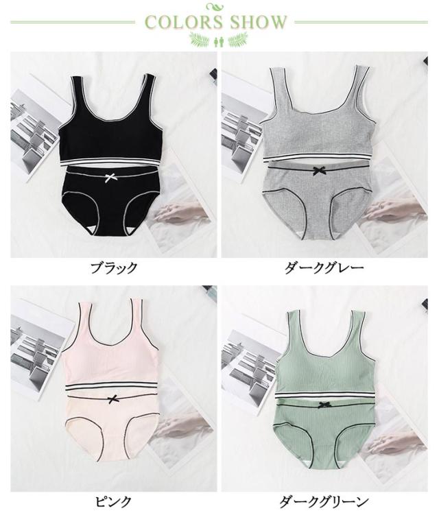 ジュニアブラジャー ジュニア向け スポーツブラ シンプル ノンワイヤーブラ 高校生 学生 リブ 英字ロゴ 上下セット 高校生 フィットネス ヨガ 運動 トレーニング ベストタイプ 子供 中学生 小学生