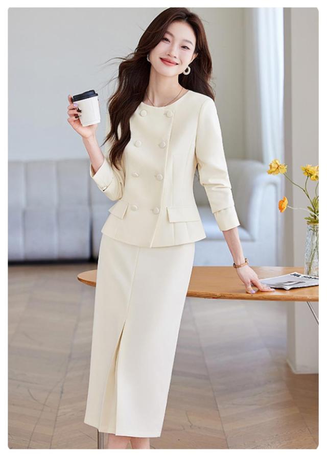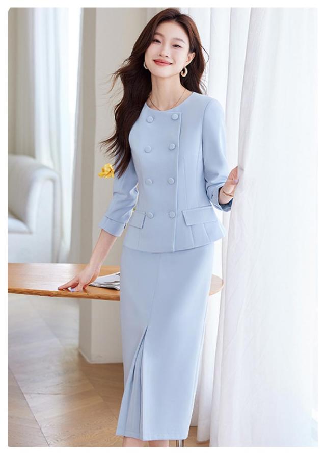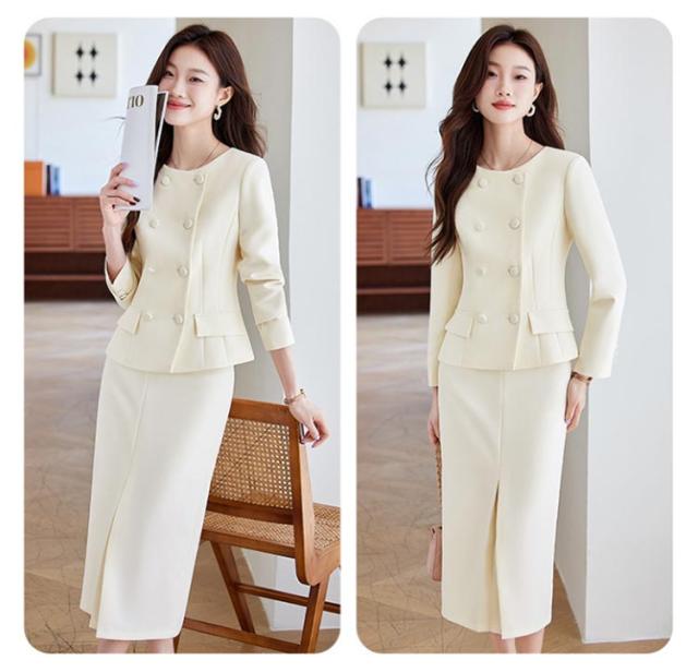 | ジャケットと腰高見えなタイトスカートの新鮮なセットアップ。 立体感のあるボタンジャケットがクラシックな印象を与え、洗練された雰囲気を演出。 スリット入りタイトスカート が女性らしいエレガンスをプラスし、動きやすさも抜群。 柔らかい色合いは知的で落ち着いた雰囲気を醸し出し、どんなシーンにもマッチ。 春・秋はもちろん、冬はインナーを工夫してオールシーズン着用可能。 この一着で、エレガントで洗練された大人の女性を演出しましょう! | |