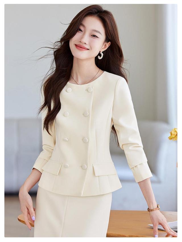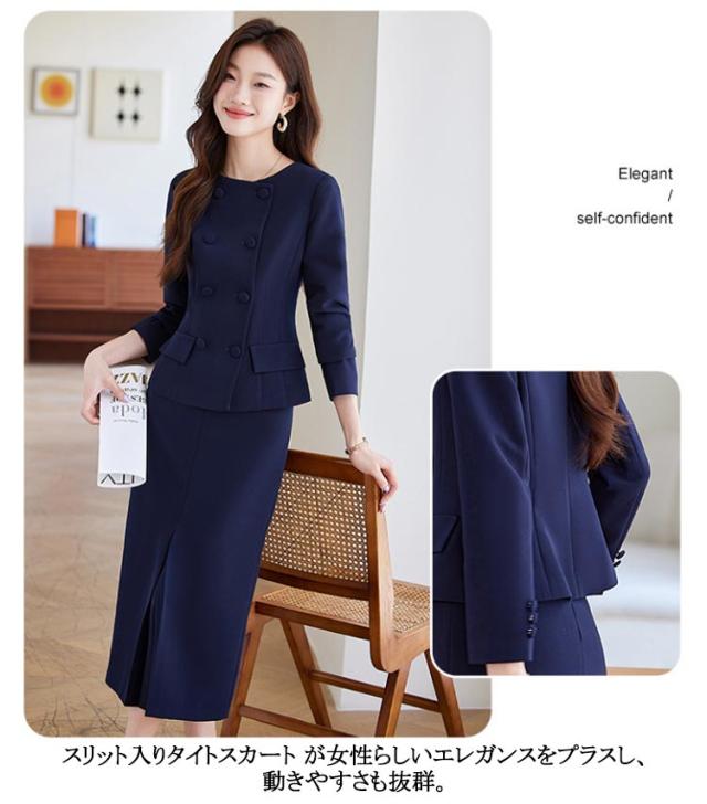 | ジャケットと腰高見えなタイトスカートの新鮮なセットアップ。 立体感のあるボタンジャケットがクラシックな印象を与え、洗練された雰囲気を演出。 スリット入りタイトスカート が女性らしいエレガンスをプラスし、動きやすさも抜群。 柔らかい色合いは知的で落ち着いた雰囲気を醸し出し、どんなシーンにもマッチ。 春・秋はもちろん、冬はインナーを工夫してオールシーズン着用可能。 この一着で、エレガントで洗練された大人の女性を演出しましょう! | |