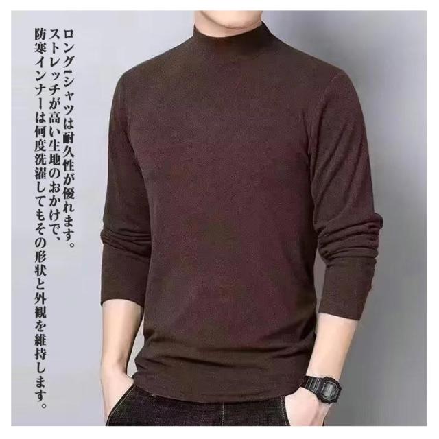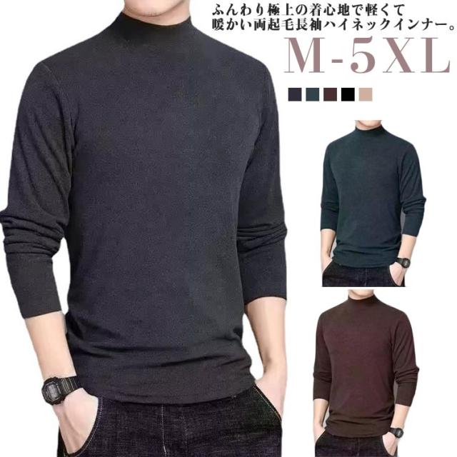 | M-5XL ふんわり極上の着心地で軽くて暖かい両起毛長袖ハイネックインナー。 首回りを上品に暖かく包み込むハイネックシャツ。 肌触りが良く柔らかでチクチク感のない起毛素材を使用します。 ロングtシャツは耐久性が優れます。ストレッチが高い生地のおかけで、防寒インナーは何度洗濯してもその形状と外観を維持します。 長袖Tシャツはジャケット、コート、スーツ、ジーンズと楽にコーデができます。 トップスとしてもインナーとしても着用できるので、季節や温度によって適切な着用方法を選択できます。 | |
