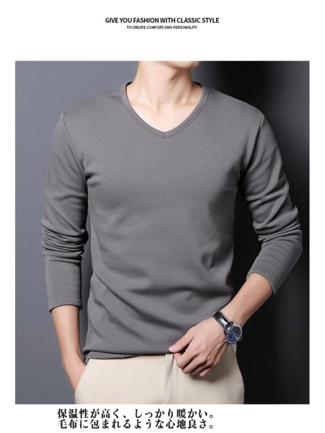 インナーシャツ 丸首 メンズ Vネック 裏起毛 クルーネック メンズ 長袖 あったか トップス あったかインナー 秋冬 長袖 男性 暖かい 冬 インナー 裏起毛 あったかインナー 肌着 長袖 インナーシャツ ロングTシャツ