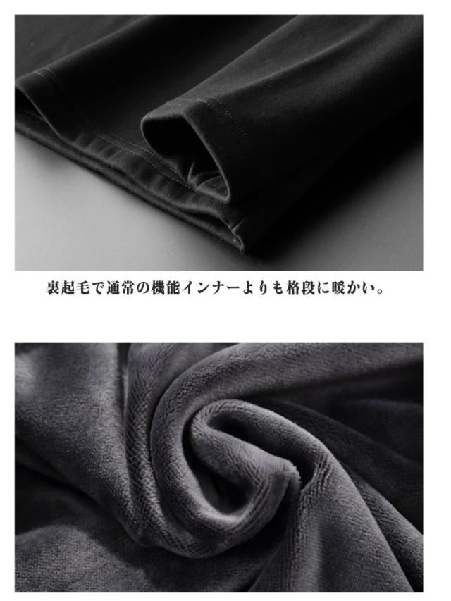 | M-5XL 選べるVネックと丸首!厚手で内側が起毛の暖か肌着。 紳士メンズ秋冬用肌着、長袖Tシャツです。 保温性が高く、しっかり暖かい。毛布に包まれるような心地良さ。 軽くて動きやすいです。通気性もよくデザインも最高です! 伸縮性に優れた動きやすいストレッチ素材で、登山、スポーツなど様々な場面で活躍。 裏起毛で通常の機能インナーよりも格段に暖かい。表面生地は発熱性のある吸湿発熱素材を使用しているので、表(発熱性)と裏(保温性)両面で寒さを防いでくれ、一般的な機能インナーよりも更に温かく着こせます。 | |