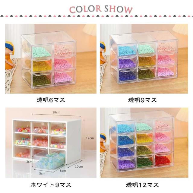 小分け ビーズケース 収納ケース 小物 ビーズ入れ アクセサリーケース パーツケース 3段 9マス 12マス 収納 ビーズキャビネット ビーズケース 引き出し ネイル 小物入れ パーツ 透明 小物ケー 詰め替え容器 小分けケース