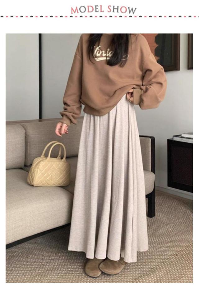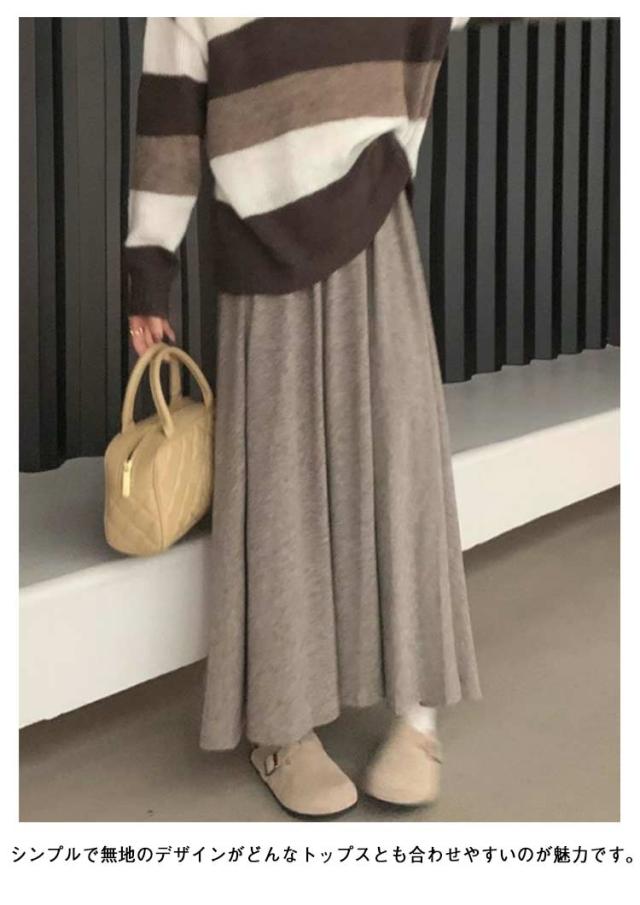 着痩せ ボトムス ウエストゴム カジュアル スカート 春 フレアスカート ハイウエスト 秋 スカート マキシ丈 ゆったり 体型カバー 夏 ロングスカート シンプル 無地 グレー 黒